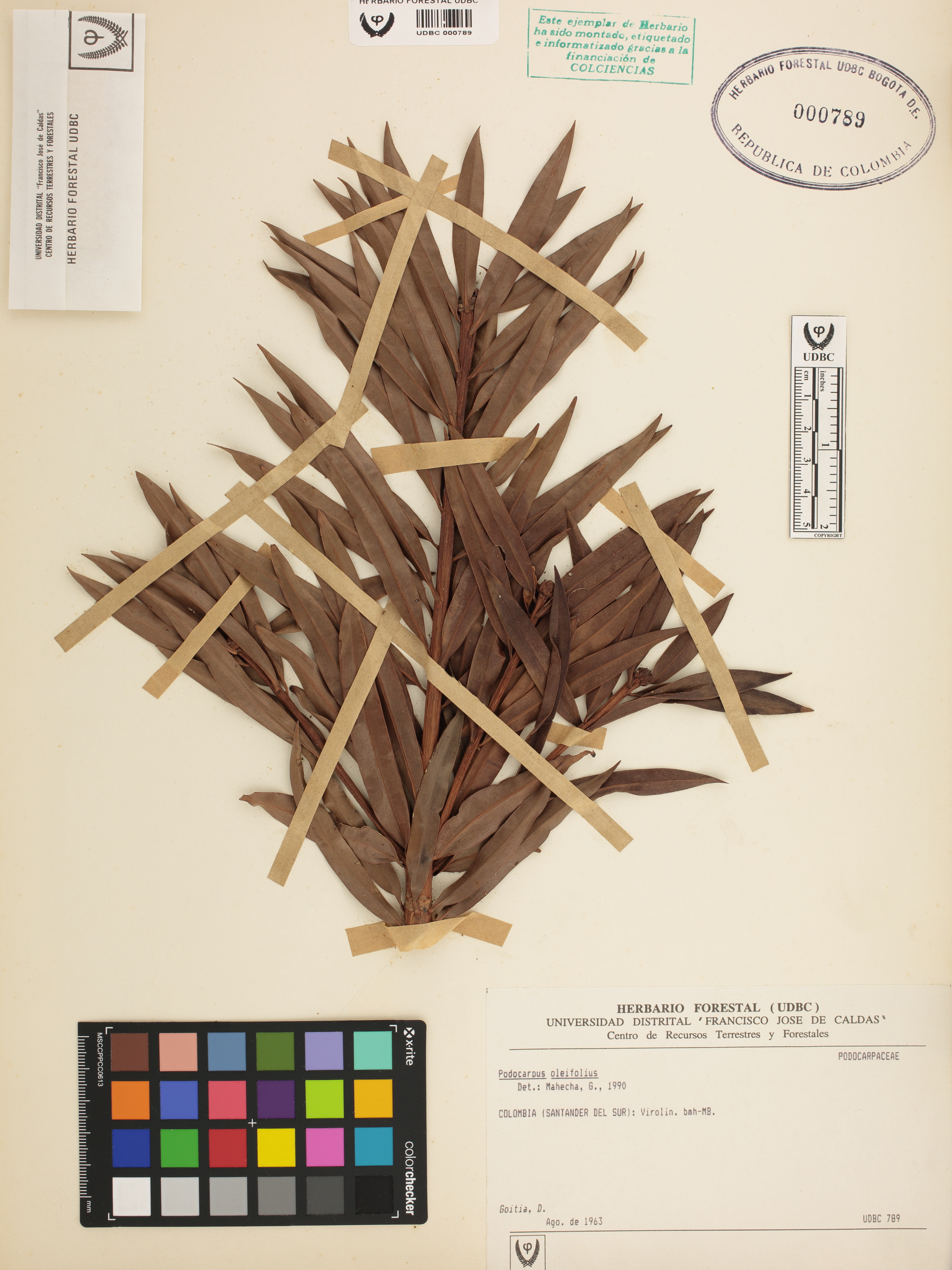 Fotografía del ejemplar Goitia, D., determinado como Podocarpus oleifolius en el año 1990
