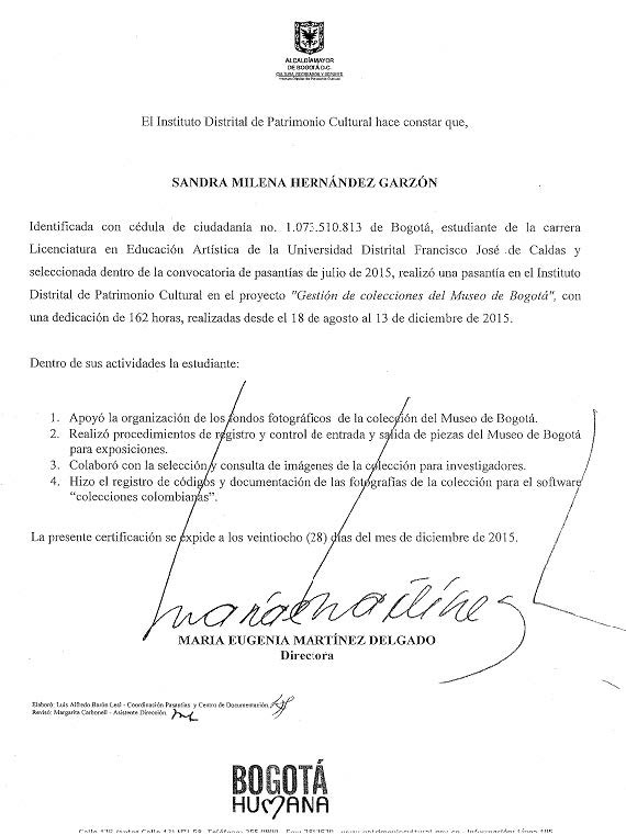 Pasantía en el Área de Gestión de Colecciones del Museo de Bogotá