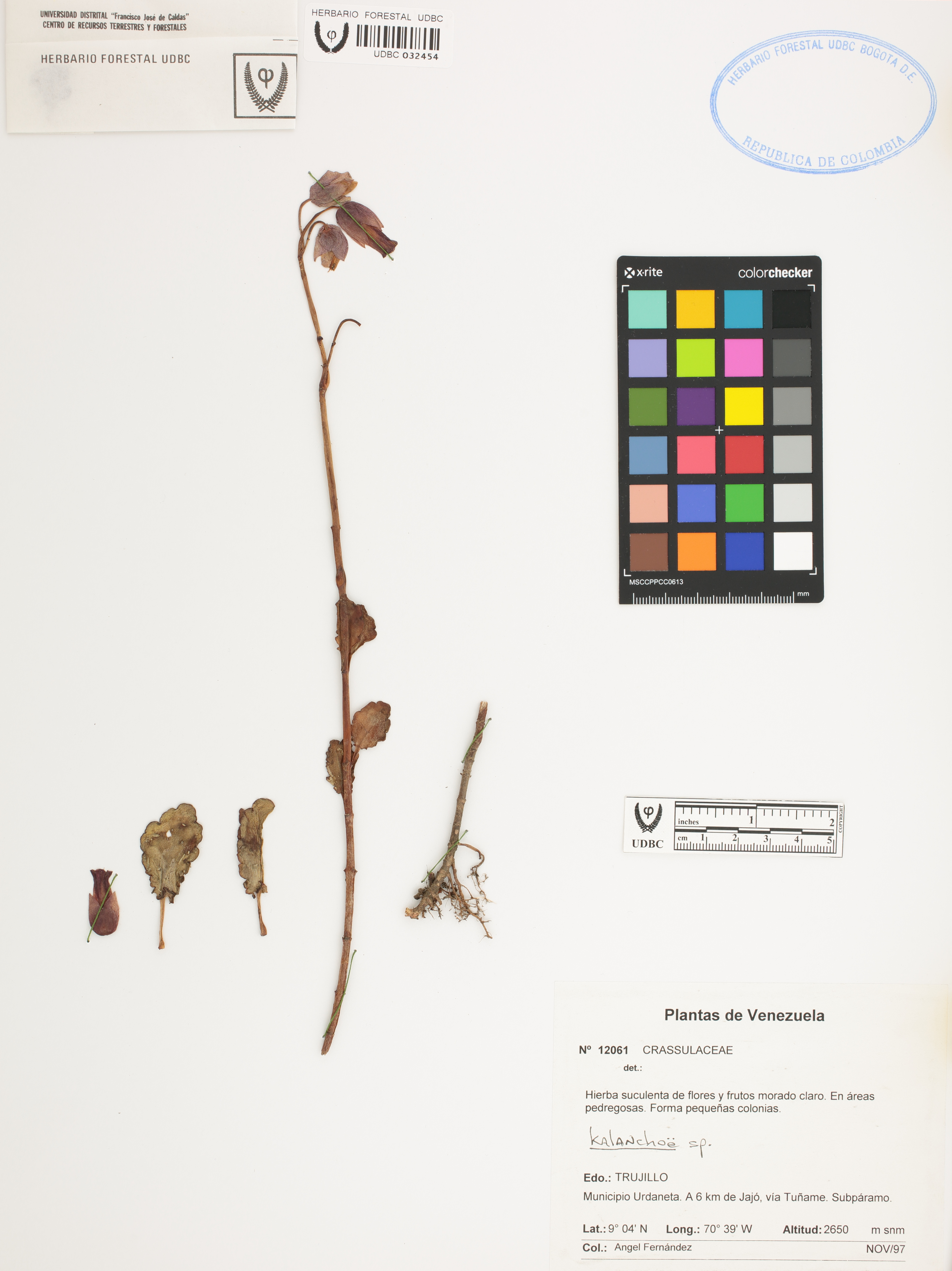 Fotografía del ejemplar Fernández, A. 12061, determinado como Kalanchoe sp.