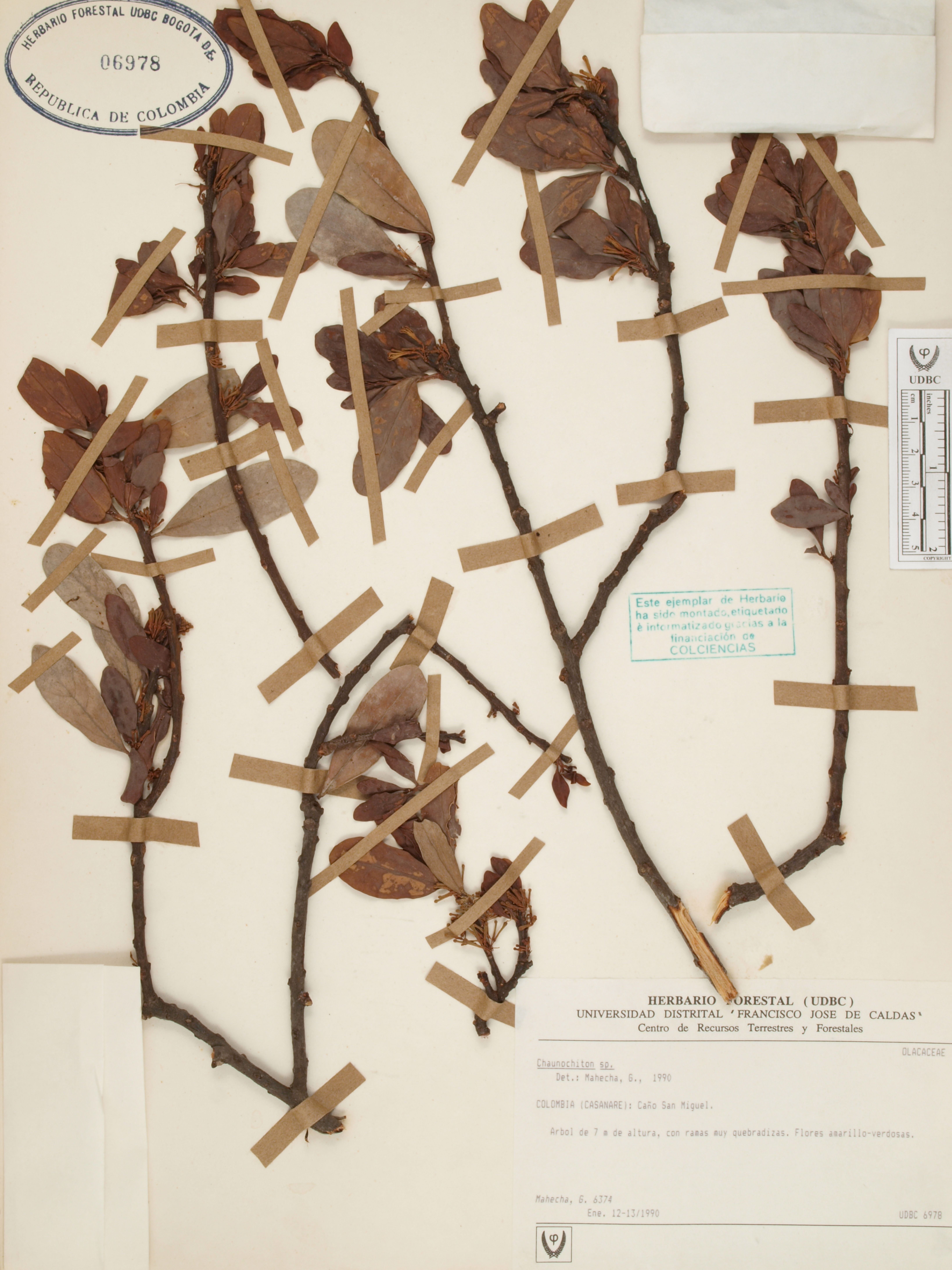 Fotografía del ejemplar Mahecha, G. 6374, determinado como Chaunochiton angustifolium en el año 2009