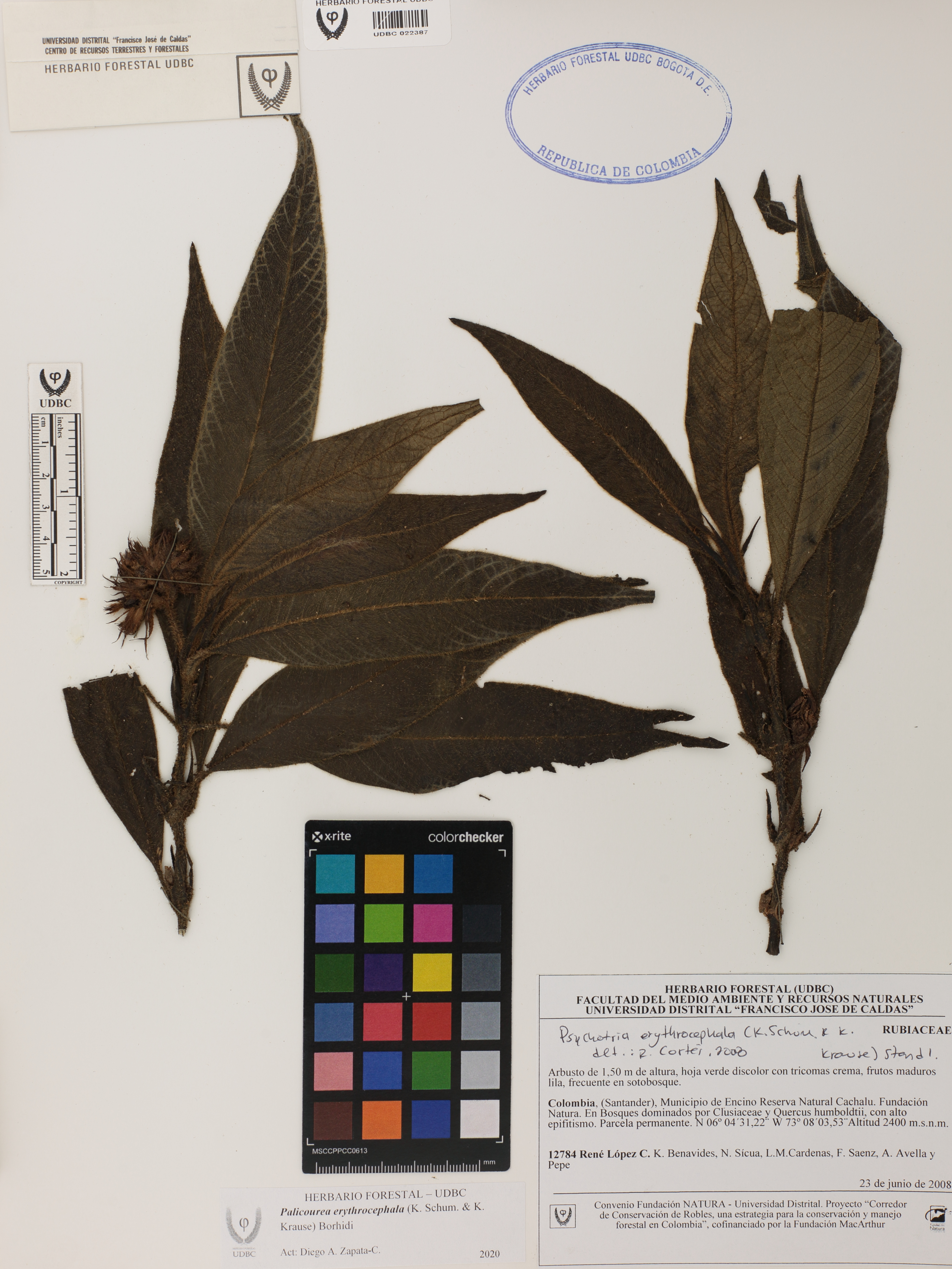 Fotografía del ejemplar López, R. 12784, determinado como Palicourea erythrocephala en el año 2008