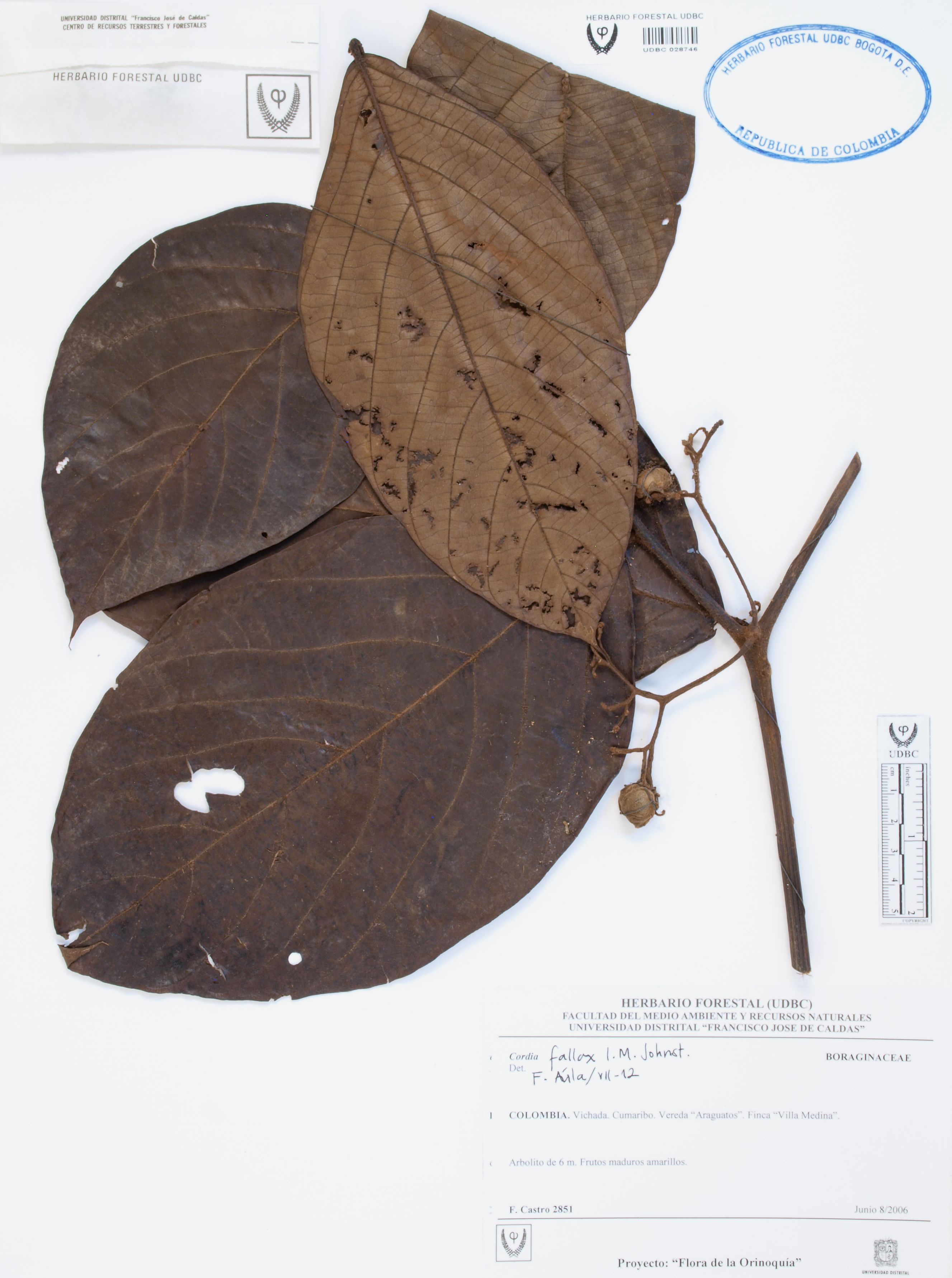 Fotografía del ejemplar Castro, F. 2851, determinado como Cordia fallax en el año 2012