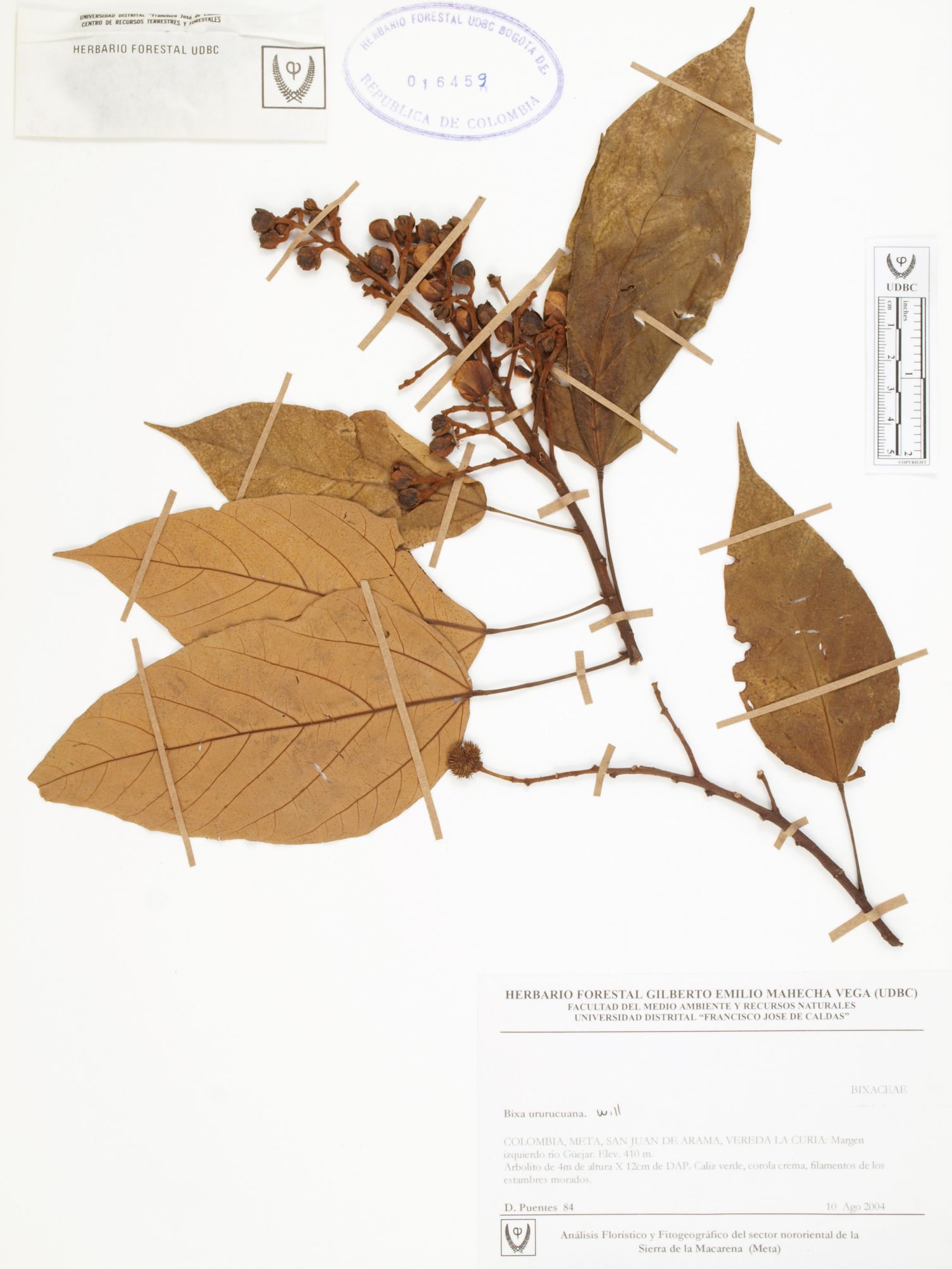 | dc.description | Fotografía del ejemplar Puentes, D. 84, determinado como Bixa urucurana | |