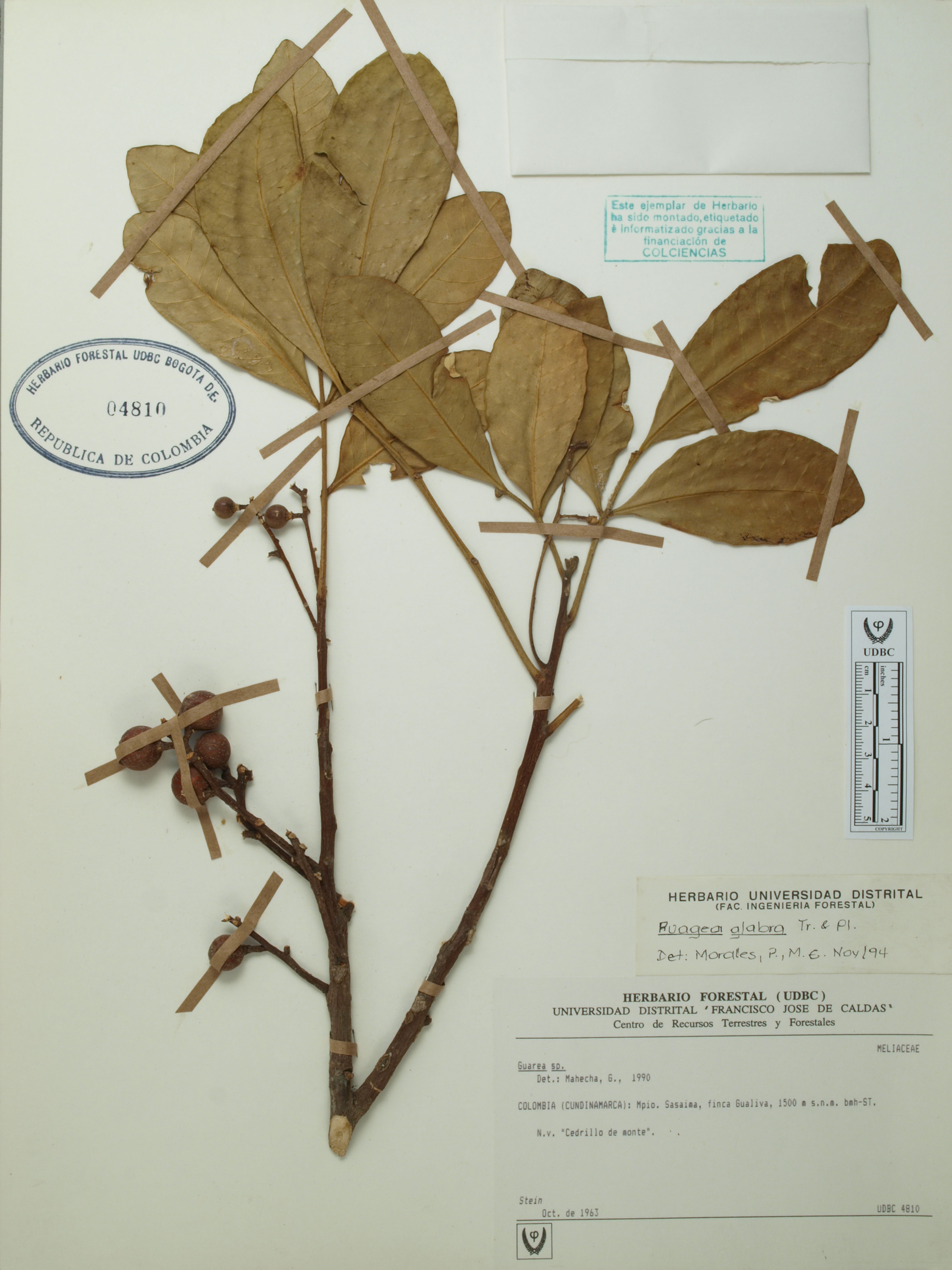 Fotografía del ejemplar Stein, B., determinado como Ruagea glabra en el año 1994