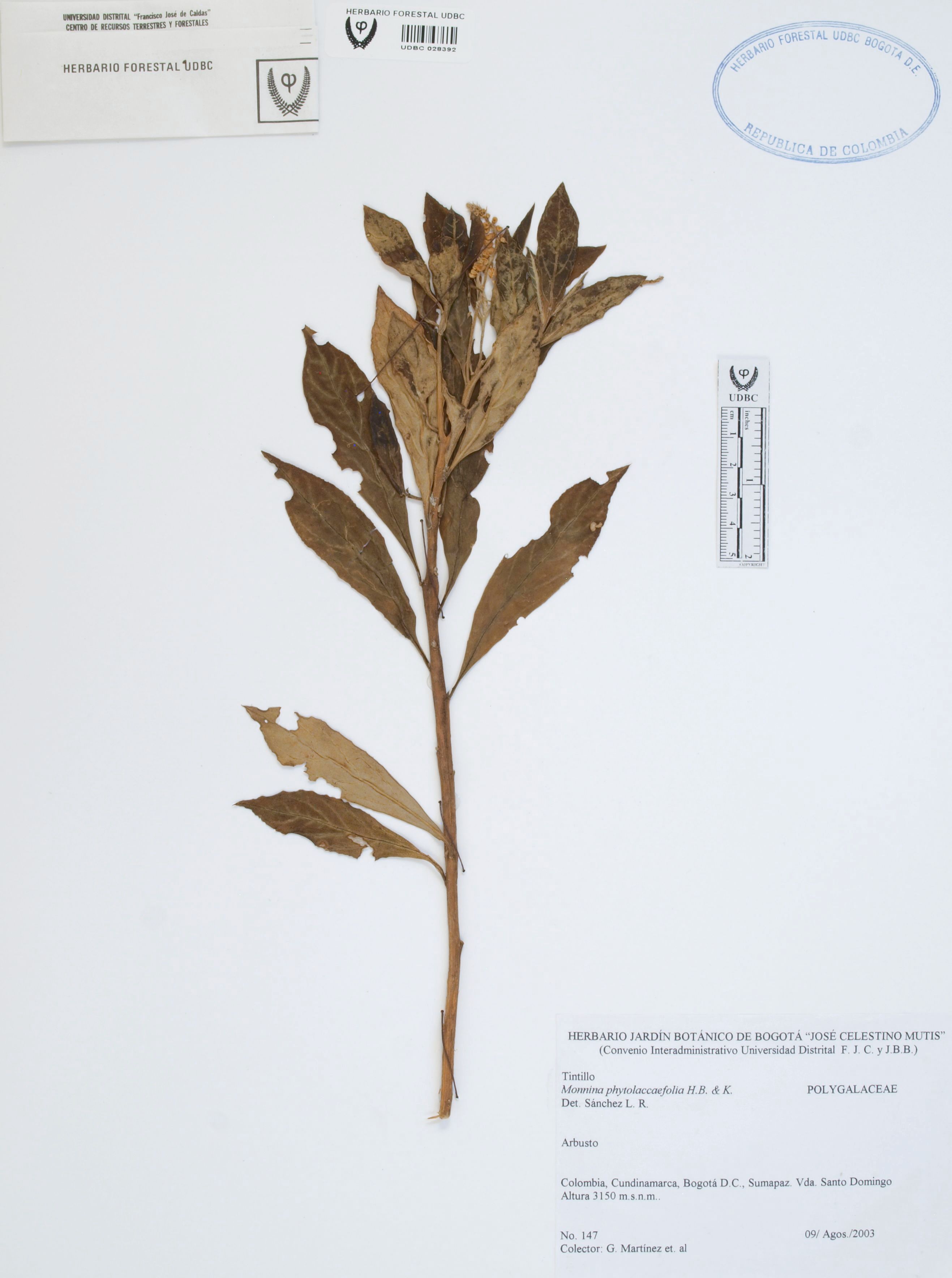 | dc.description | Fotografía del ejemplar Martínez, G. 147, determinado como Monnina phytolaccifolia | |
