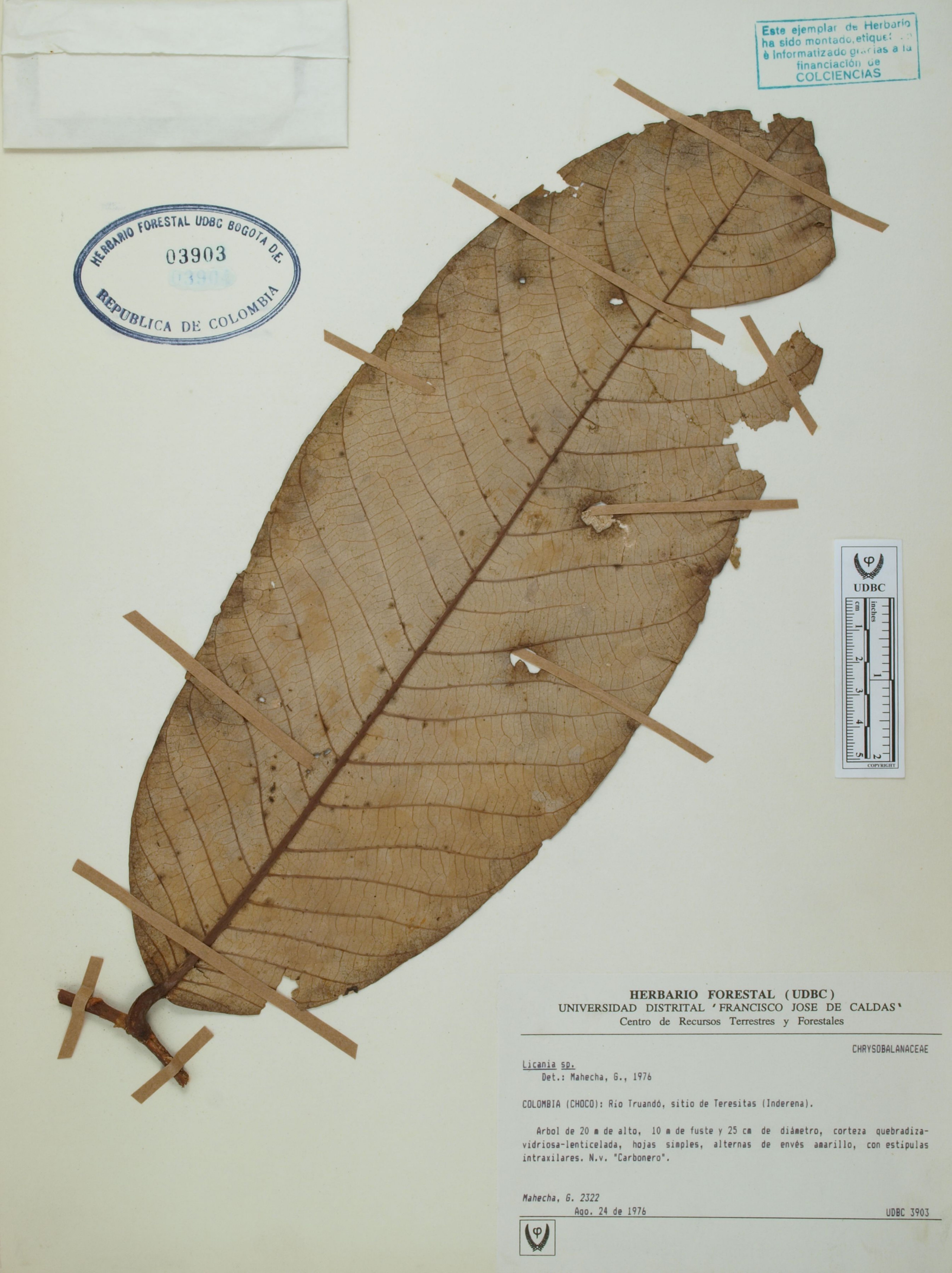 | dc.description | Fotografía del ejemplar Mahecha, G. 2322, determinado como Licania sp. en el año 1976 | |