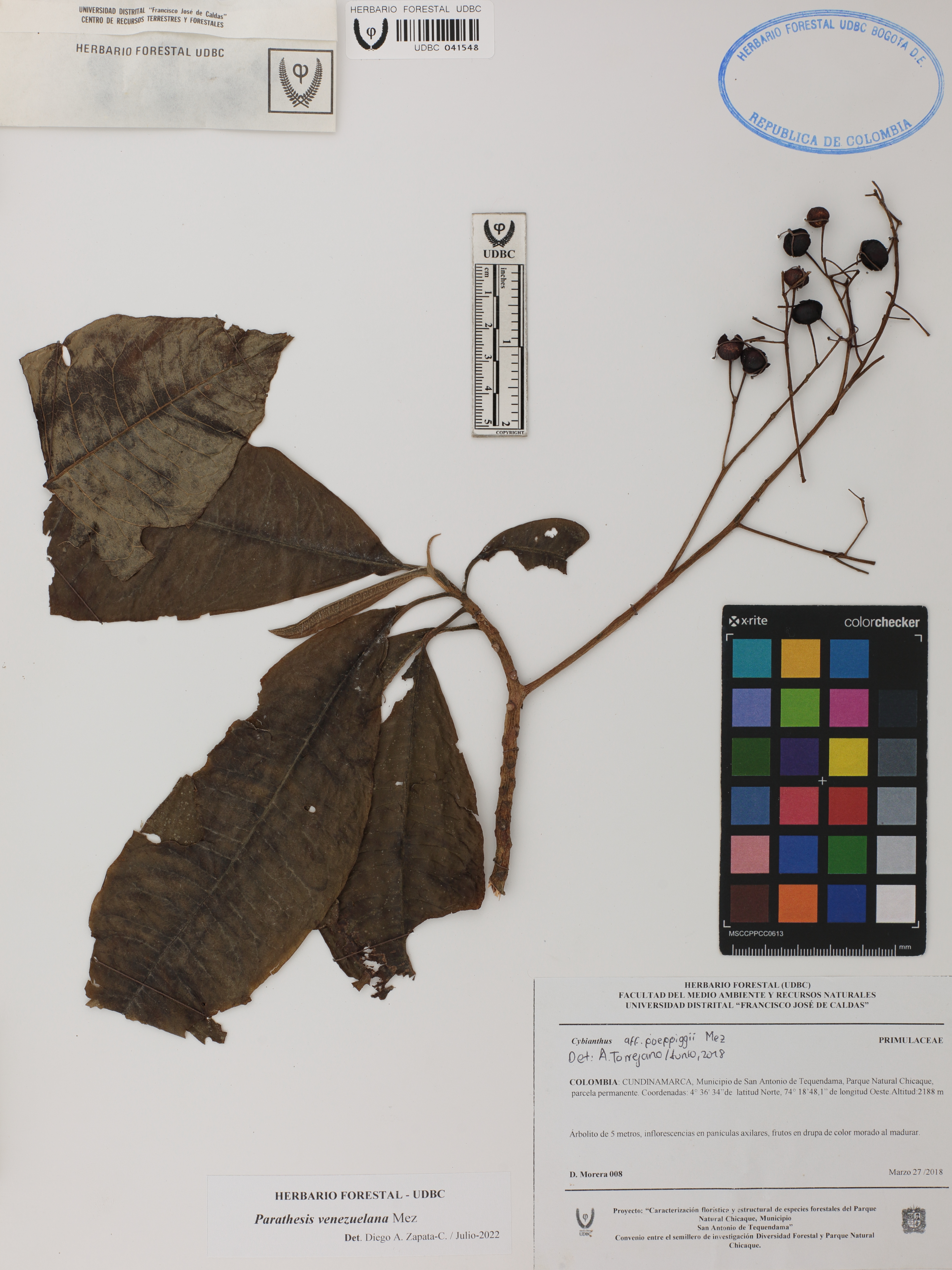 Fotografía del ejemplar Moreno, D. 8, determinado como Parathesis venezuelana en el año 2022