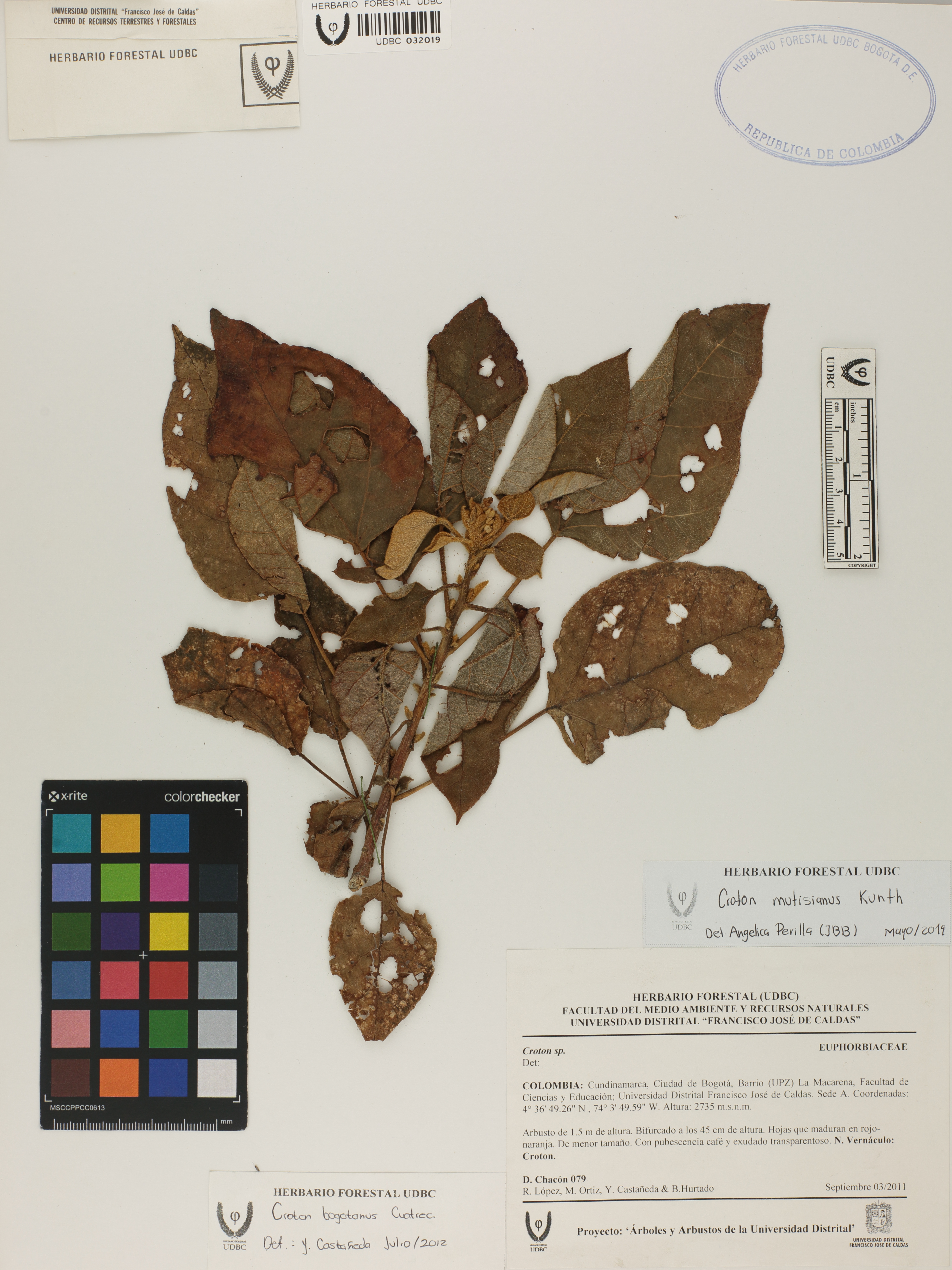Fotografía del ejemplar Chacón, D. 79, determinado como Croton mutisianus en el año 2019