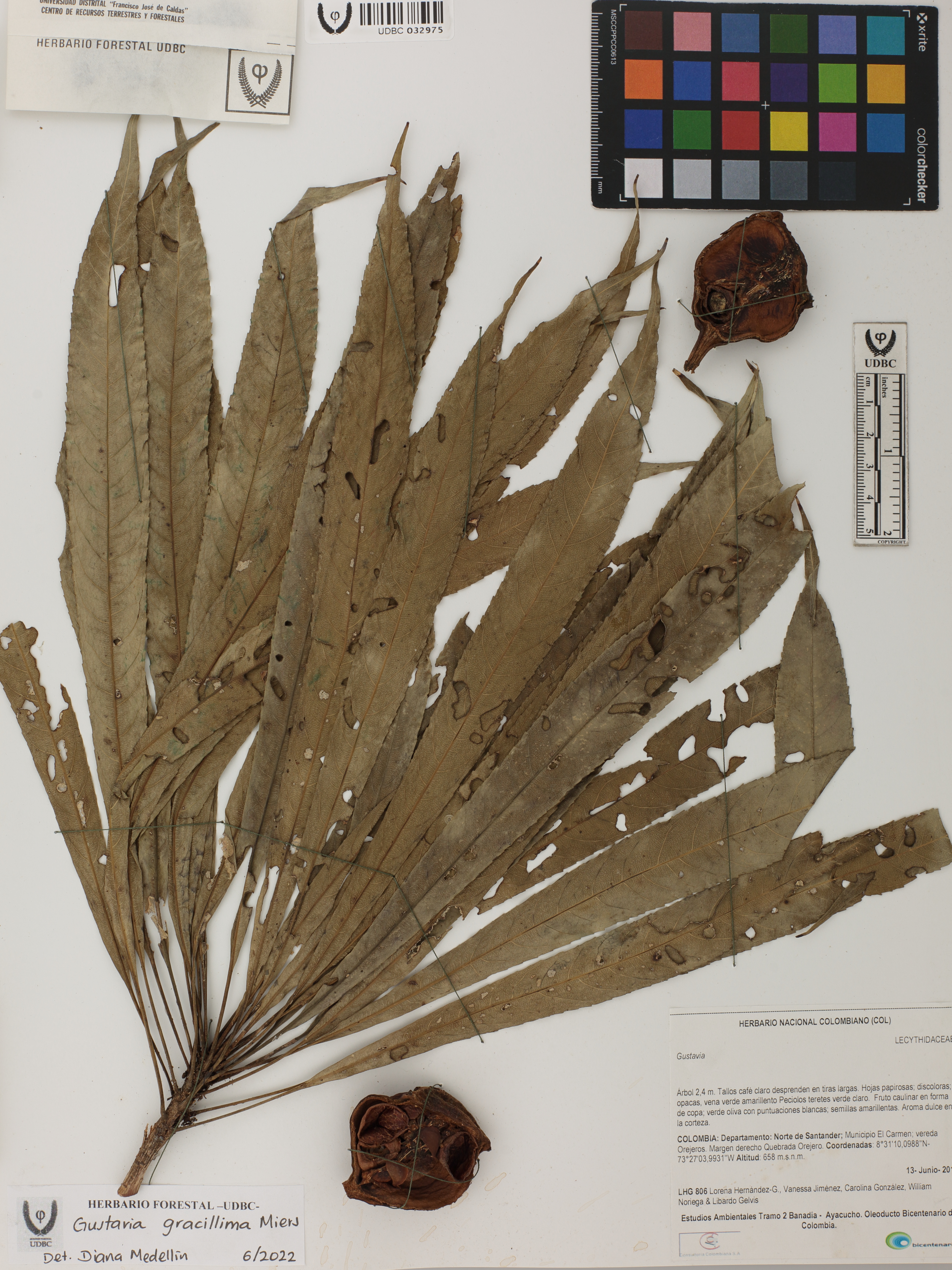 Fotografía del ejemplar Hernández-G., L. 806, determinado como Gustavia gracillima en el año 2022