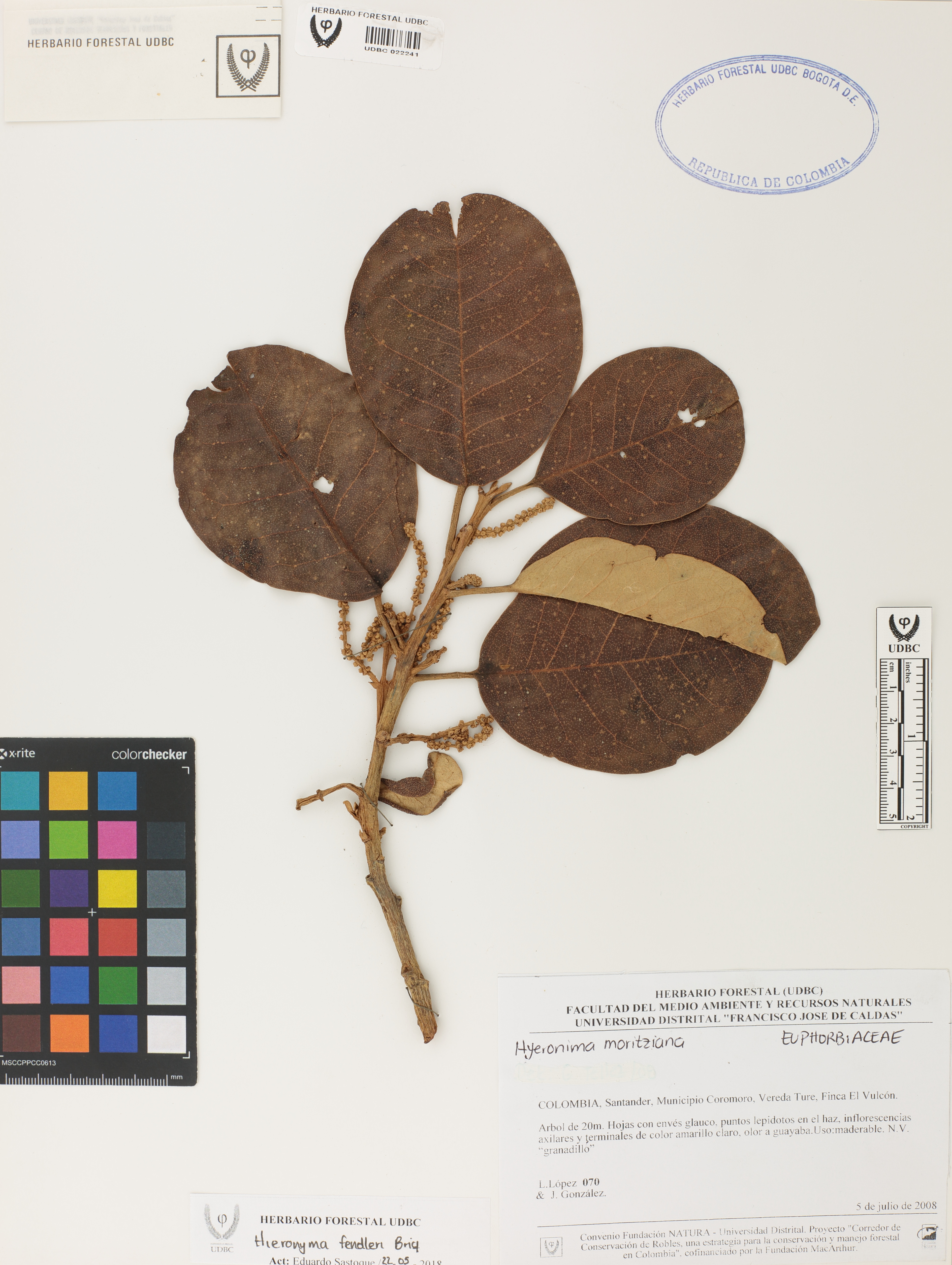 | dc.description | Fotografía del ejemplar López, L. 70, determinado como Hieronyma fendleri | |