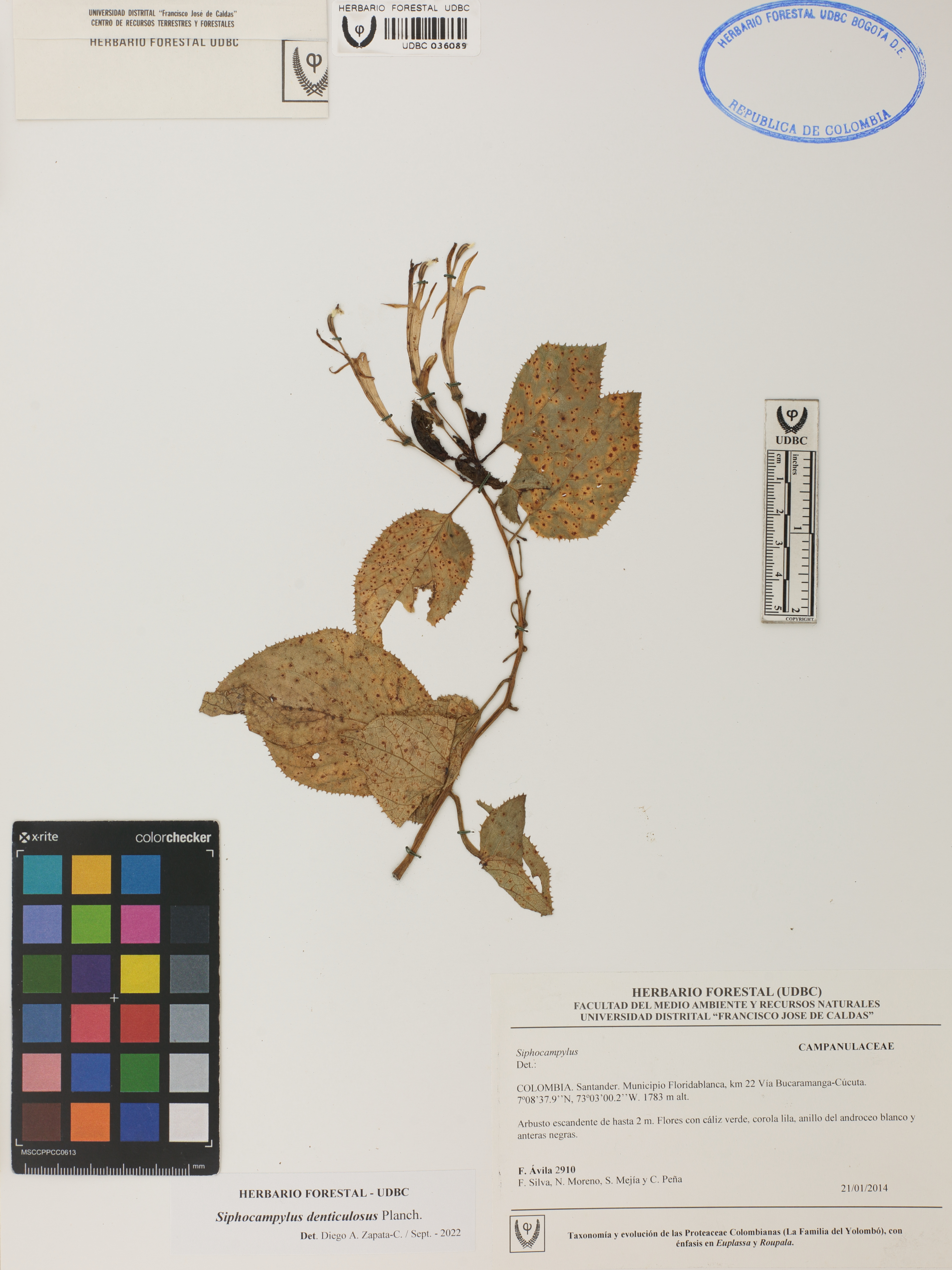 | dc.description | Fotografía del ejemplar Ávila, F. 2910, determinado como Siphocampylus denticulosus en el año 2022 | |