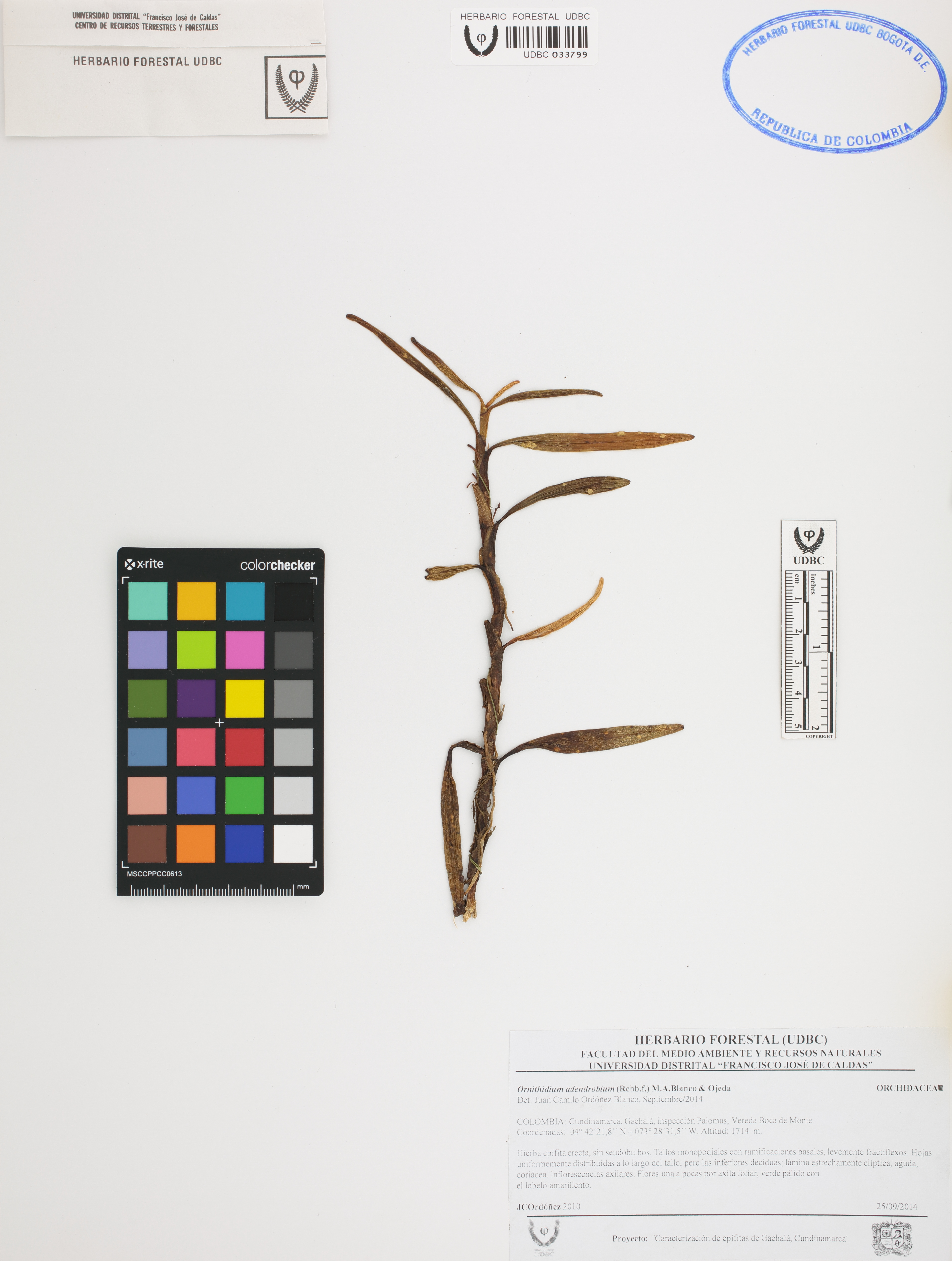 | dc.description | Fotografía del ejemplar Ordóñez, J. 2010, determinado como Ornithidium adendrobium en el año 2014 | |