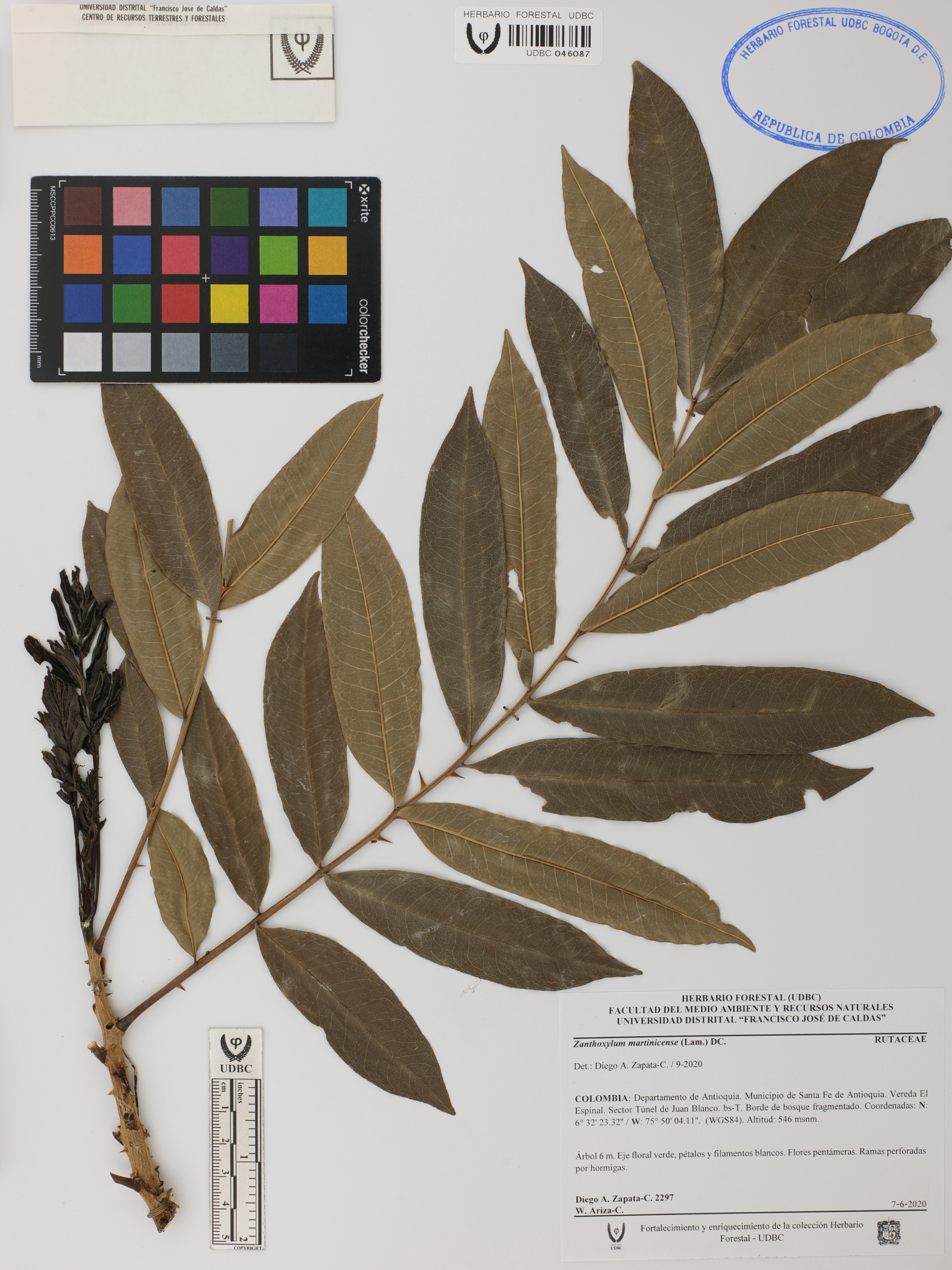 Fotografía del ejemplar Zapata-C., D. 2297, determinado como Zanthoxylum martinicense en el año 2020