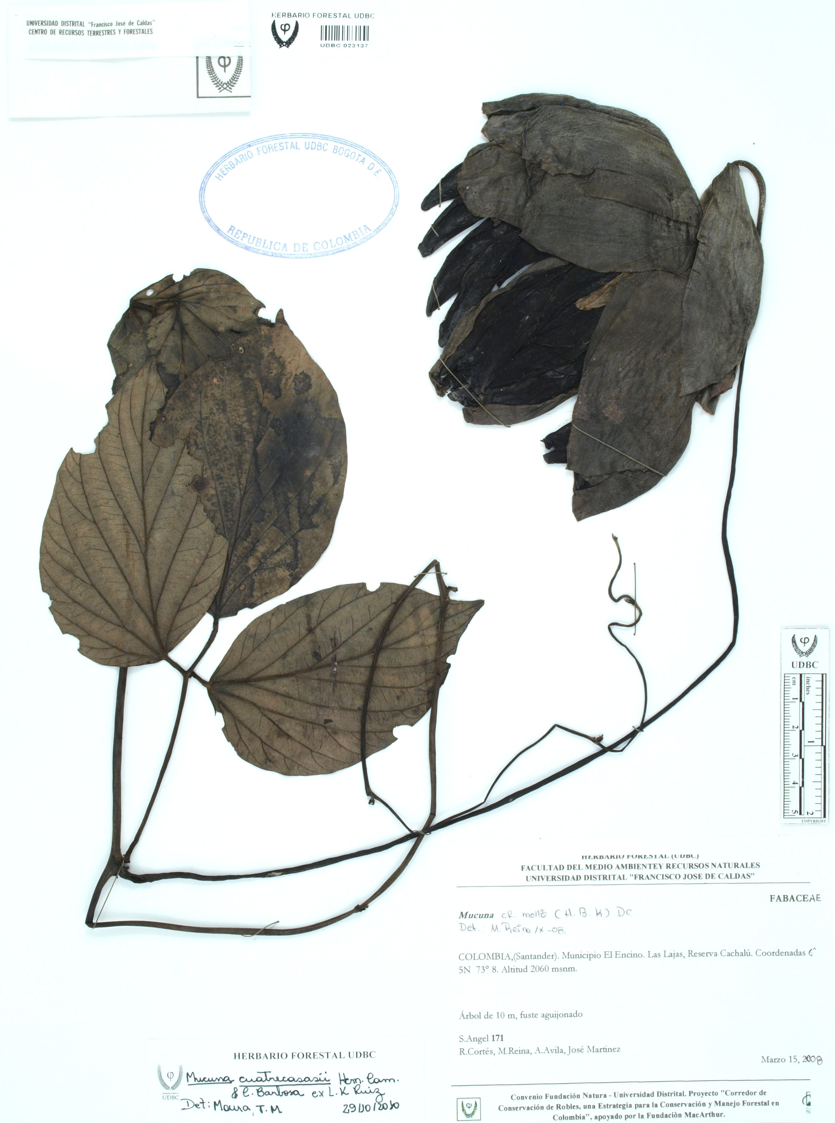 Fotografía del ejemplar Ángel, S. 171, determinado como Mucuna cuatrecasasii en el año 2010