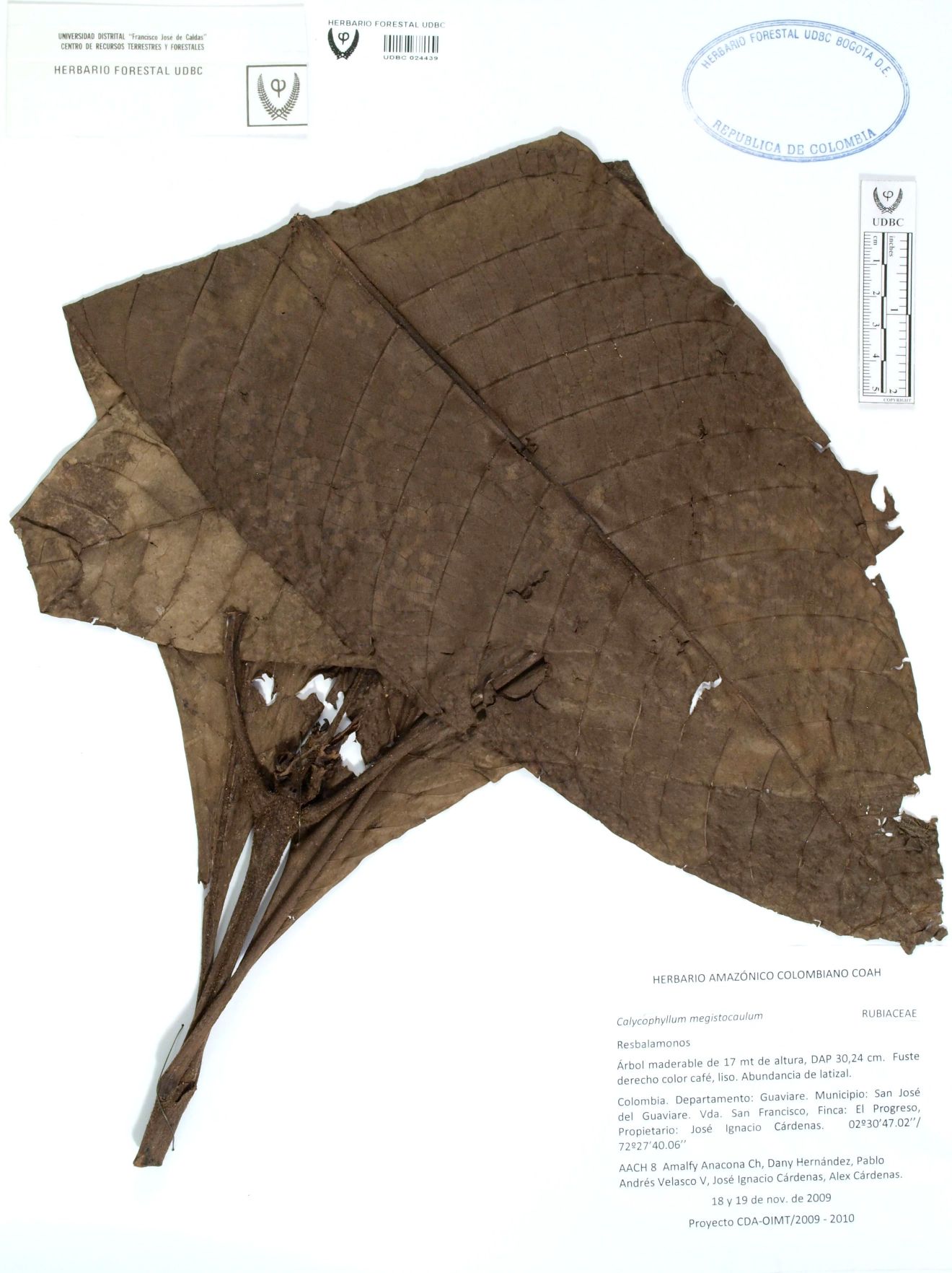 Fotografía del ejemplar Anacona, A. 8, determinado como Calycophyllum megistocaulum