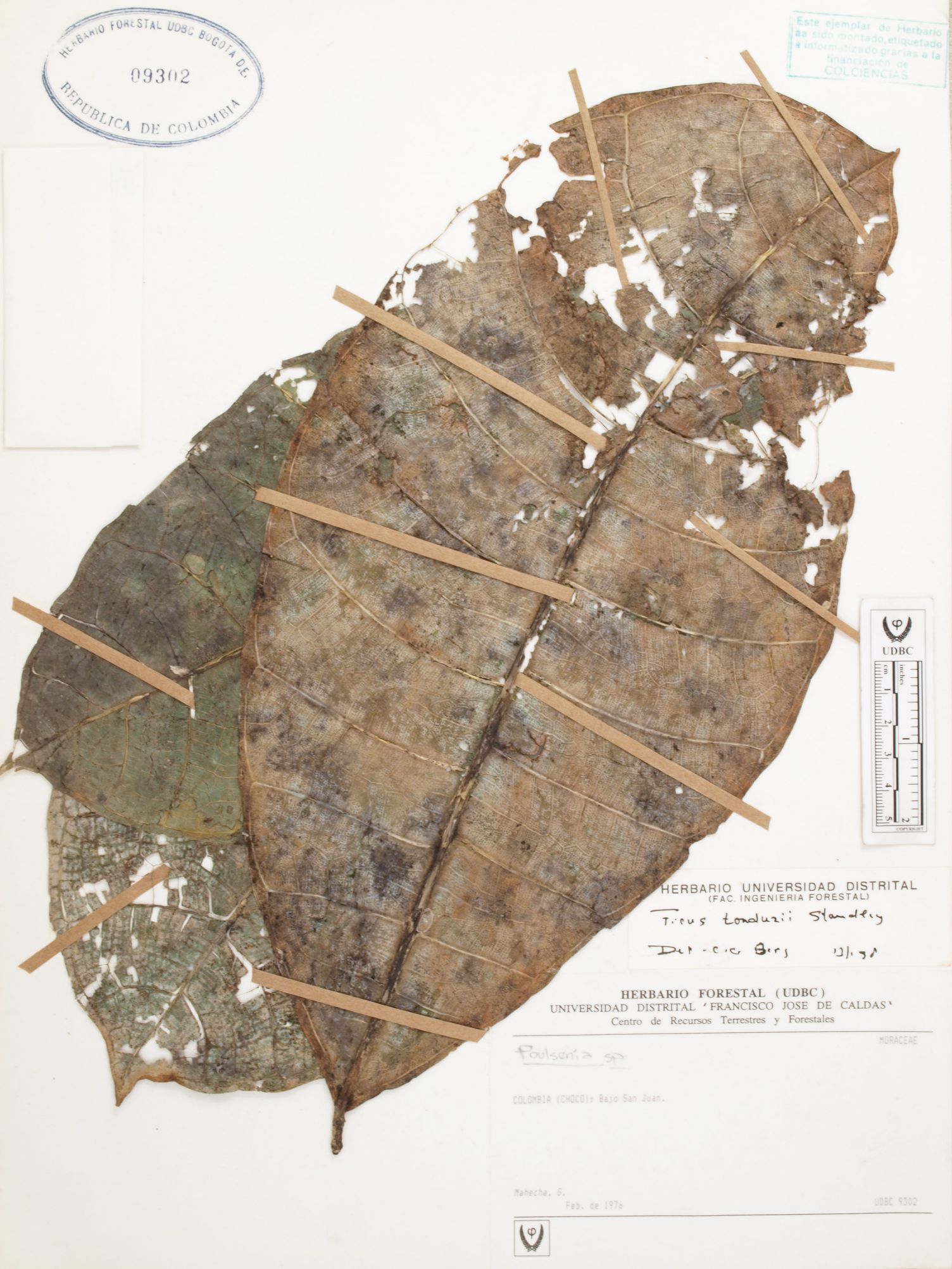 Fotografía del ejemplar Mahecha, G., determinado como Ficus tonduzii en el año 1997