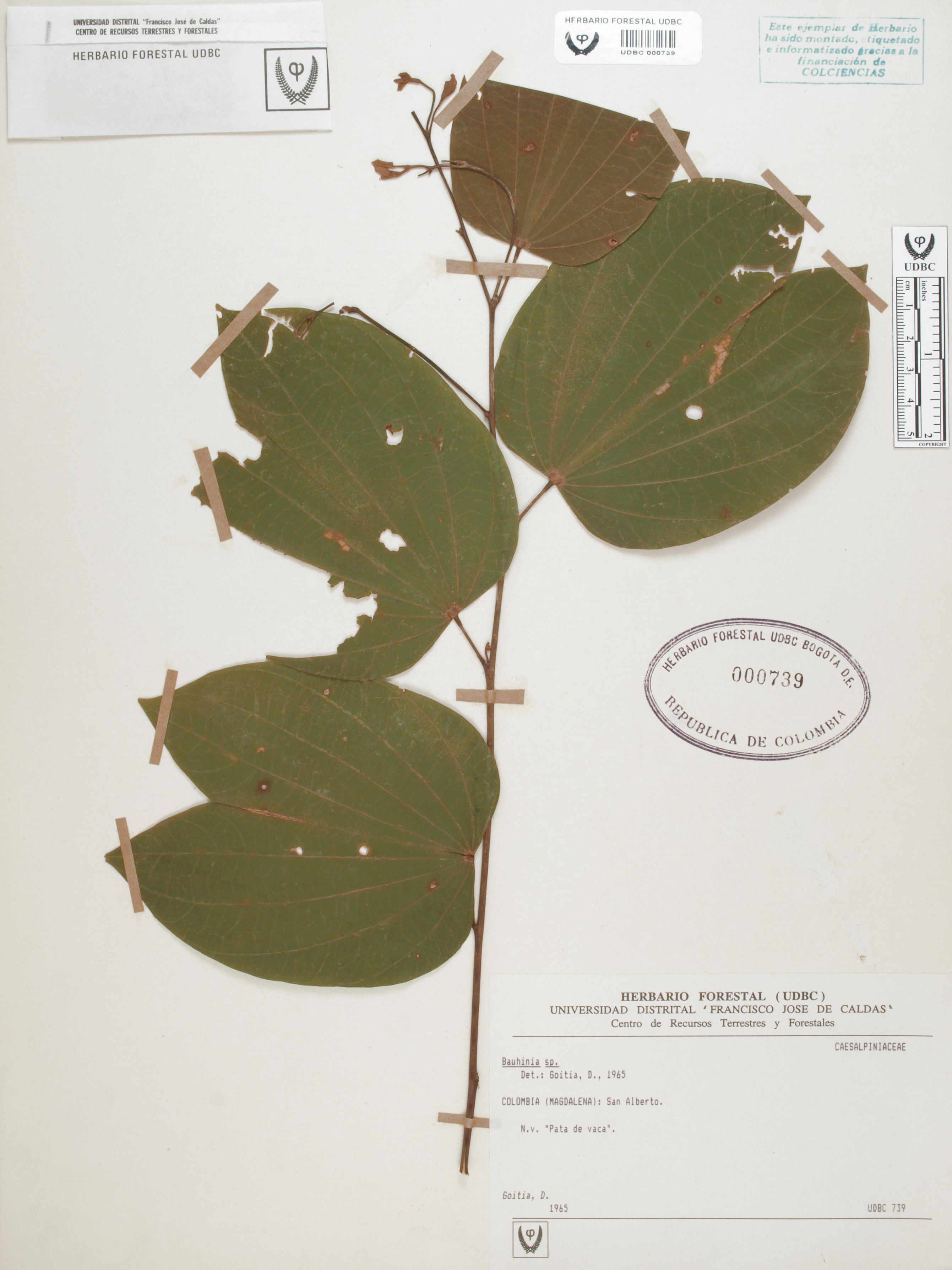 Fotografía del ejemplar Goitia, D., determinado como Bauhinia sp. en el año 1965
