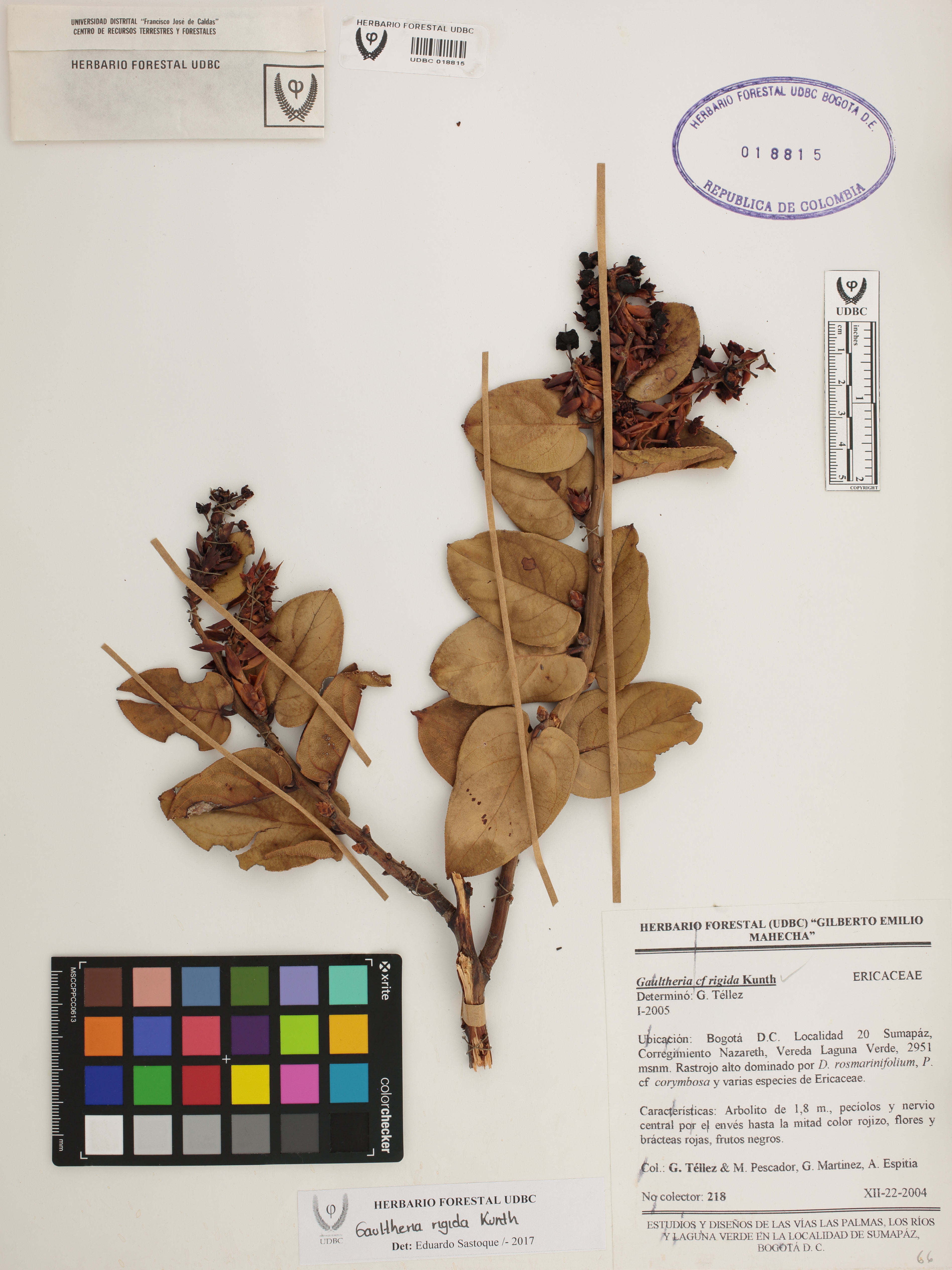Fotografía del ejemplar Téllez, G. 218, determinado como Gaultheria rigida en el año 2017
