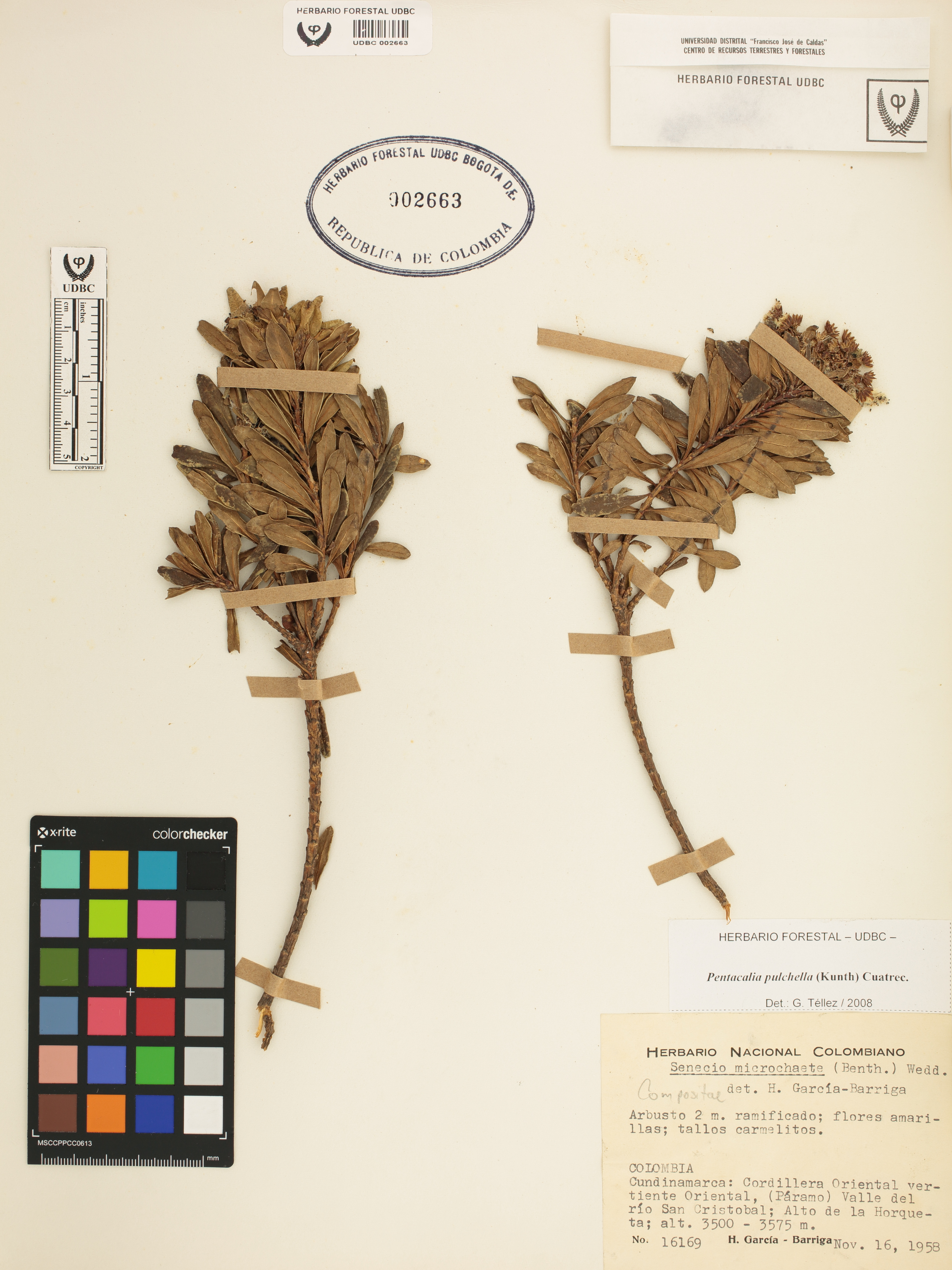 Fotografía del ejemplar García-B., H. 16169, determinado como Pentacalia pulchella en el año 2008