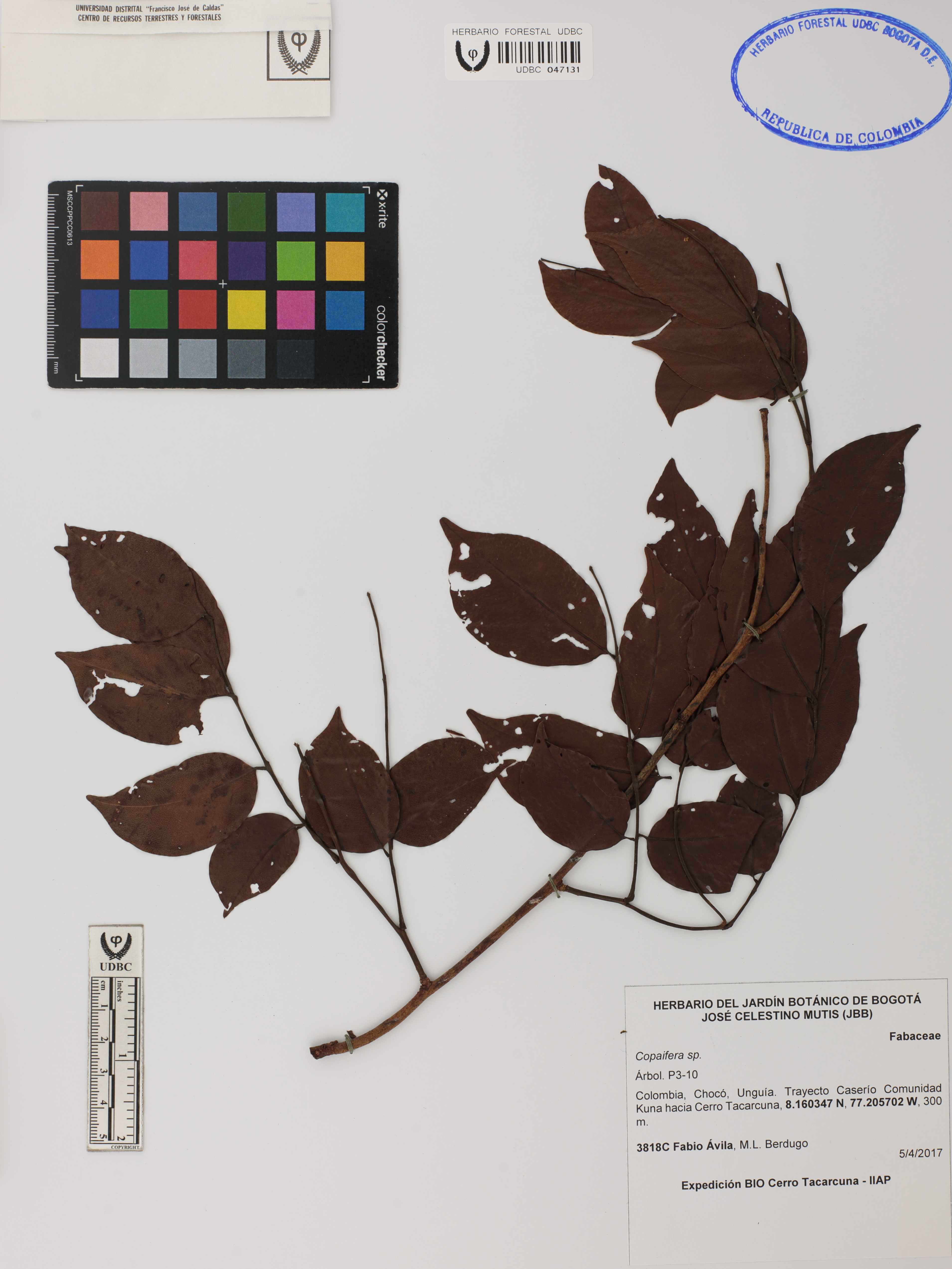 Fotografía del ejemplar Ávila, F. 3818C, determinado como Copaifera sp.