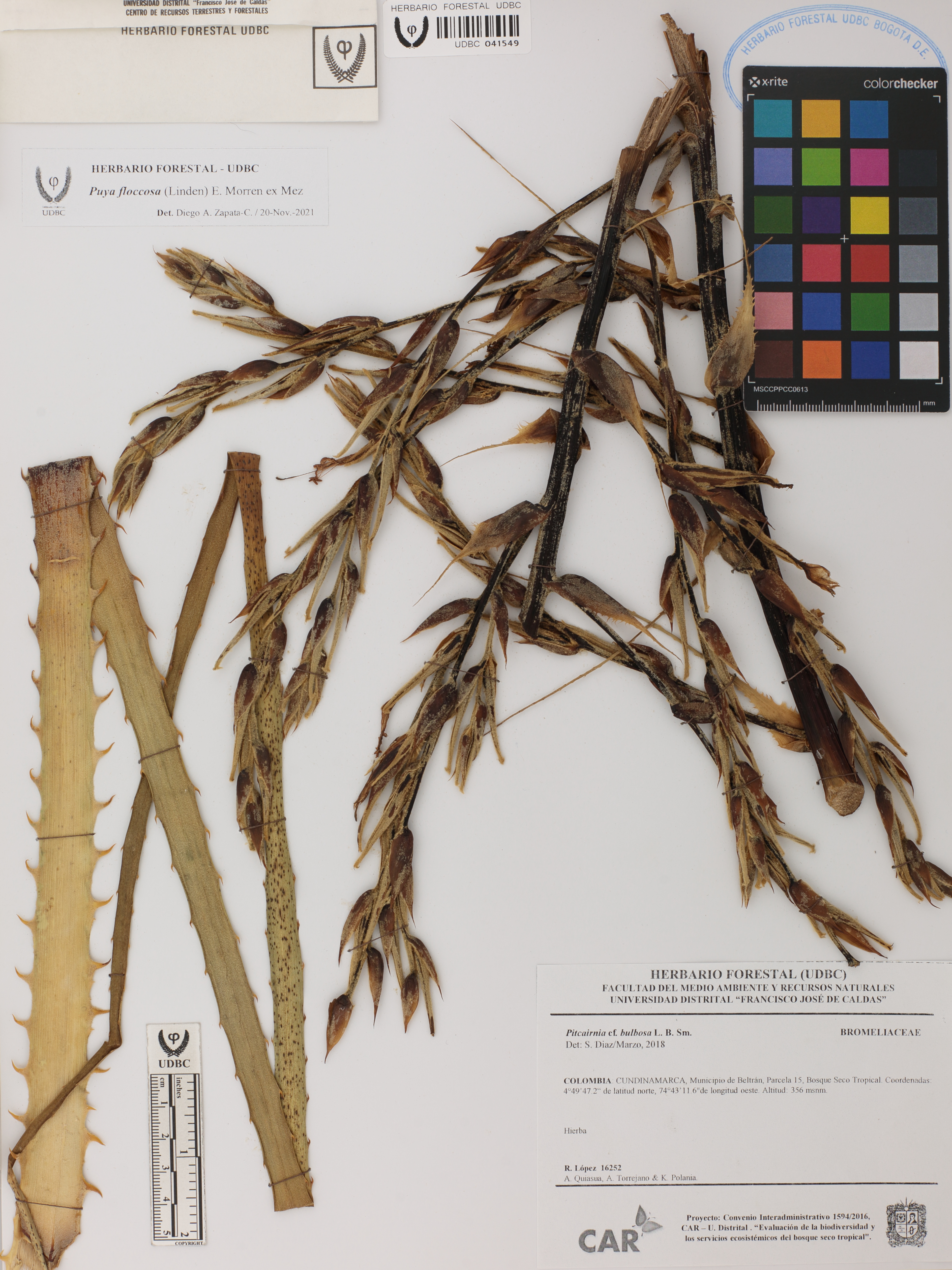 Fotografía del ejemplar López, R. 16252, determinado como Puya floccosa en el año 2021