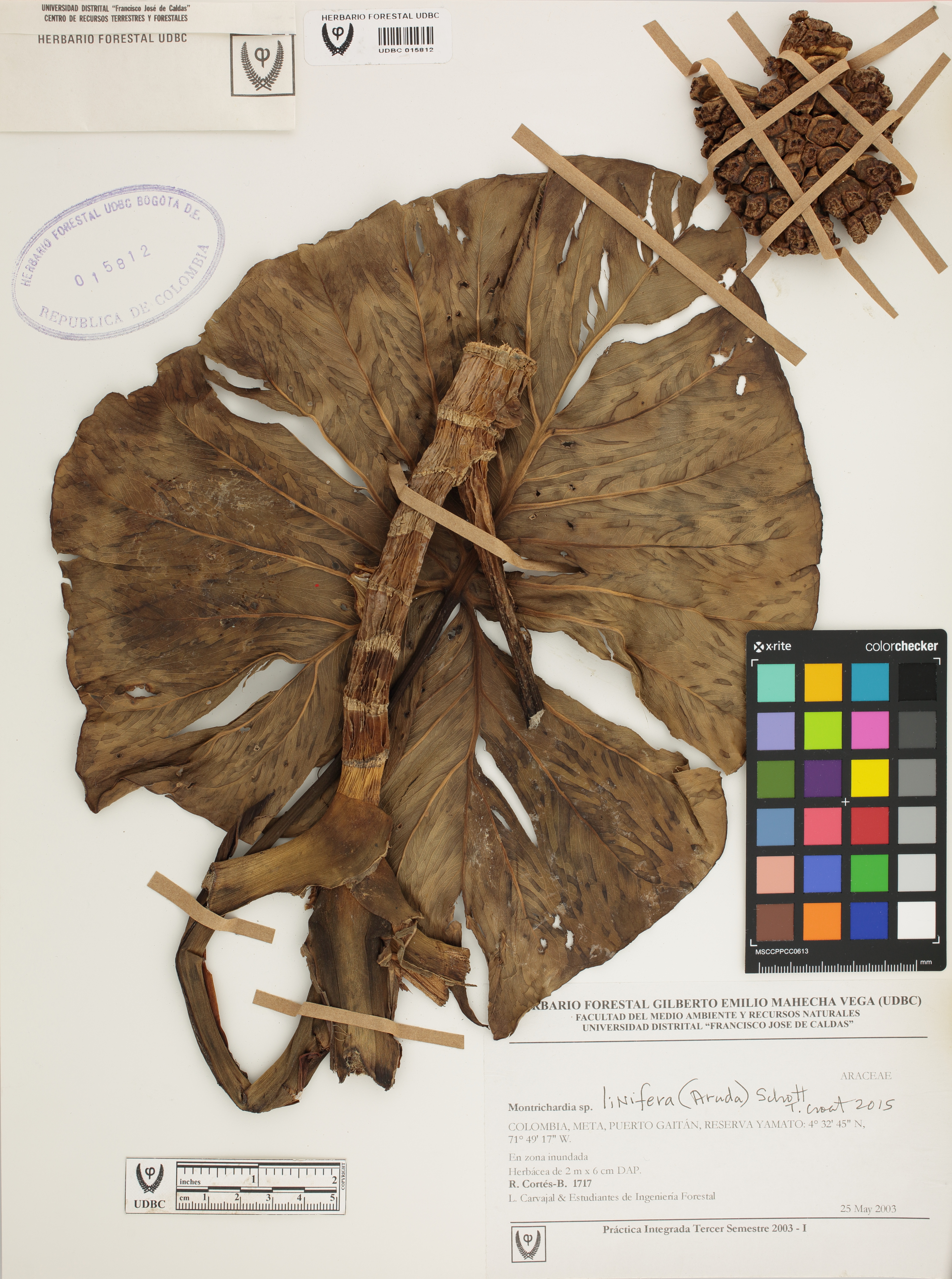 Fotografía del ejemplar Cortés-B., R. 1717, determinado como Montrichardia linifera en el año 2015