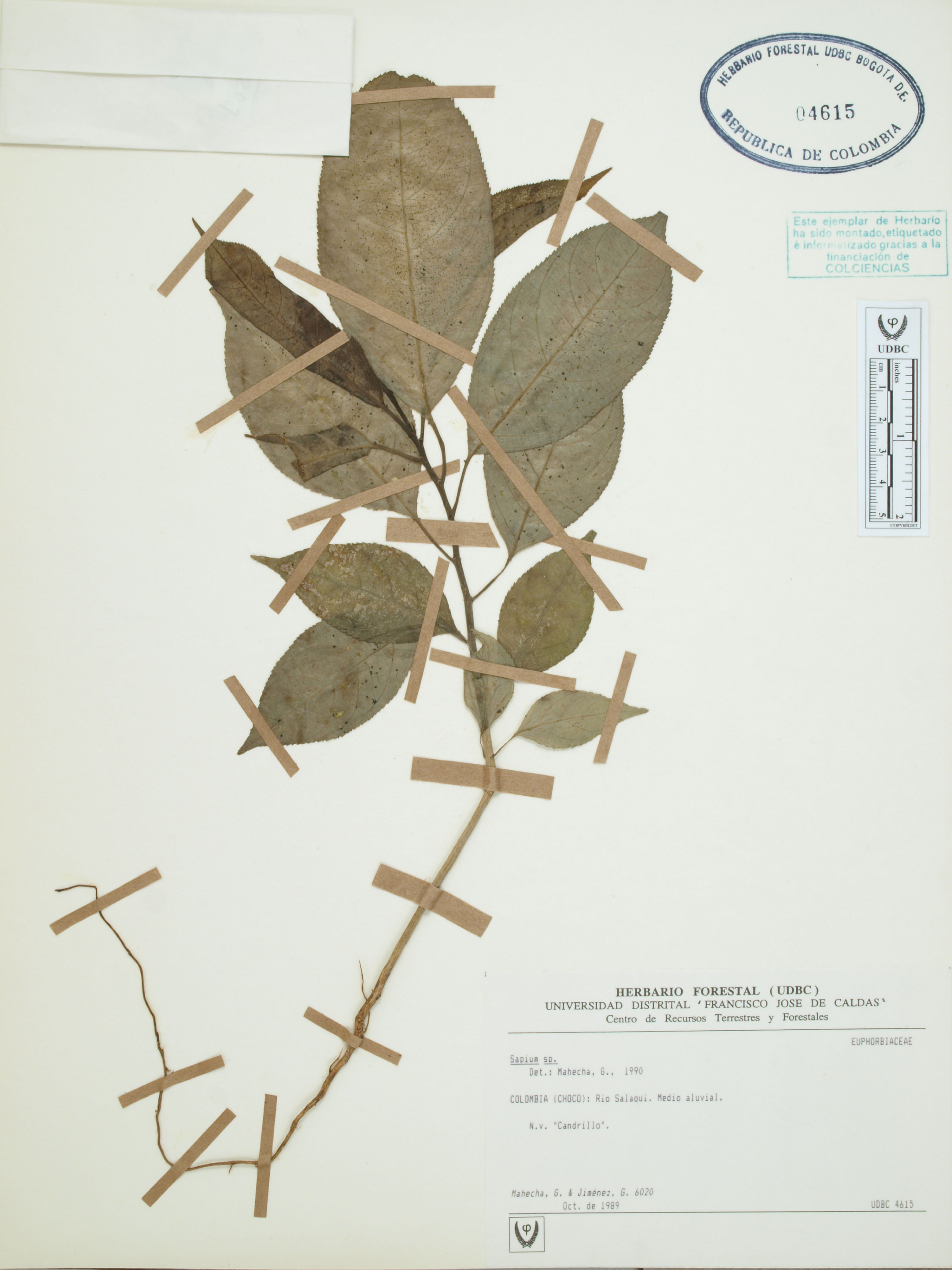 Fotografía del ejemplar Mahecha, G. 6020, determinado como Sapium sp.