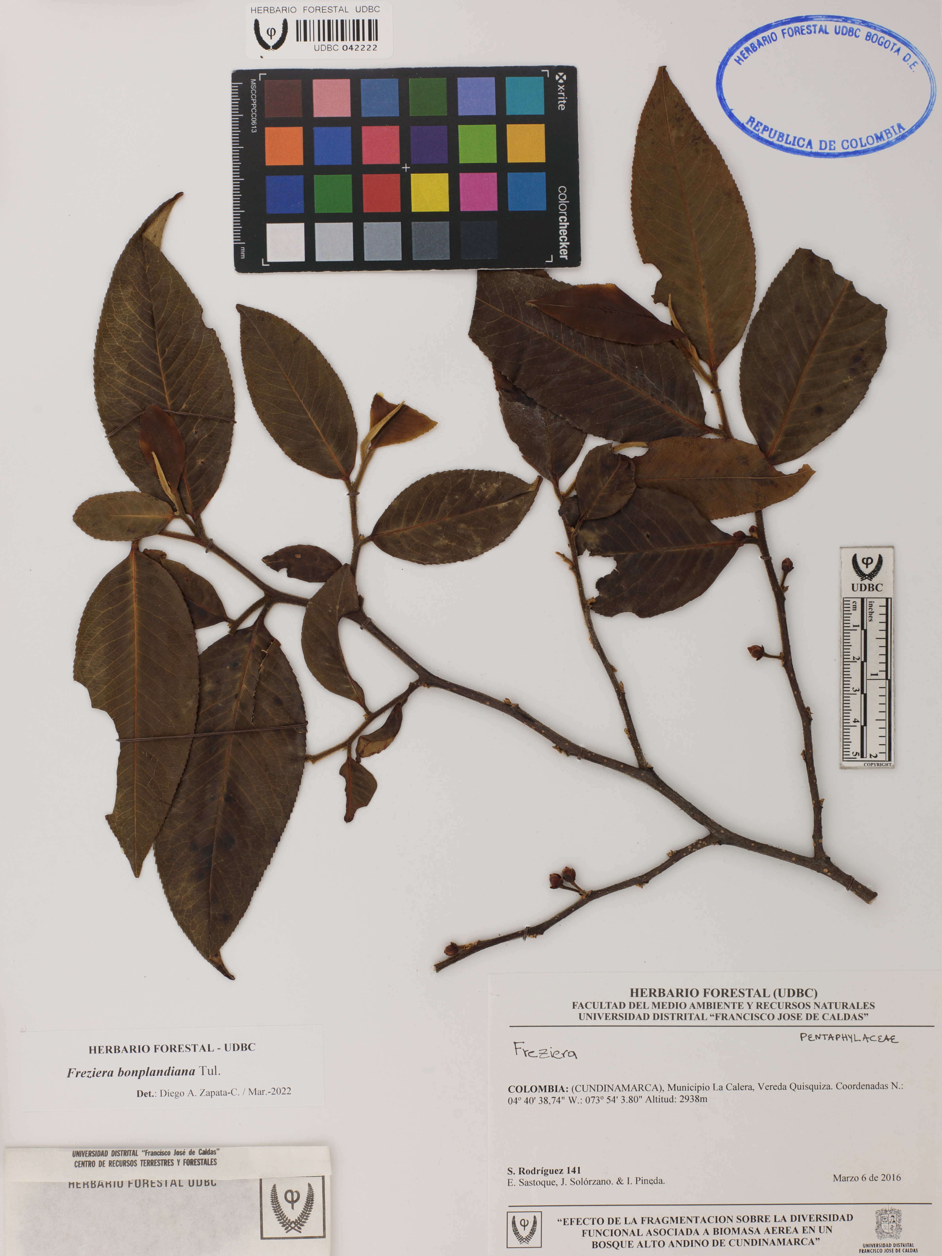 Fotografía del ejemplar Rodríguez, S. 141, determinado como Freziera bonplandiana en el año 2022