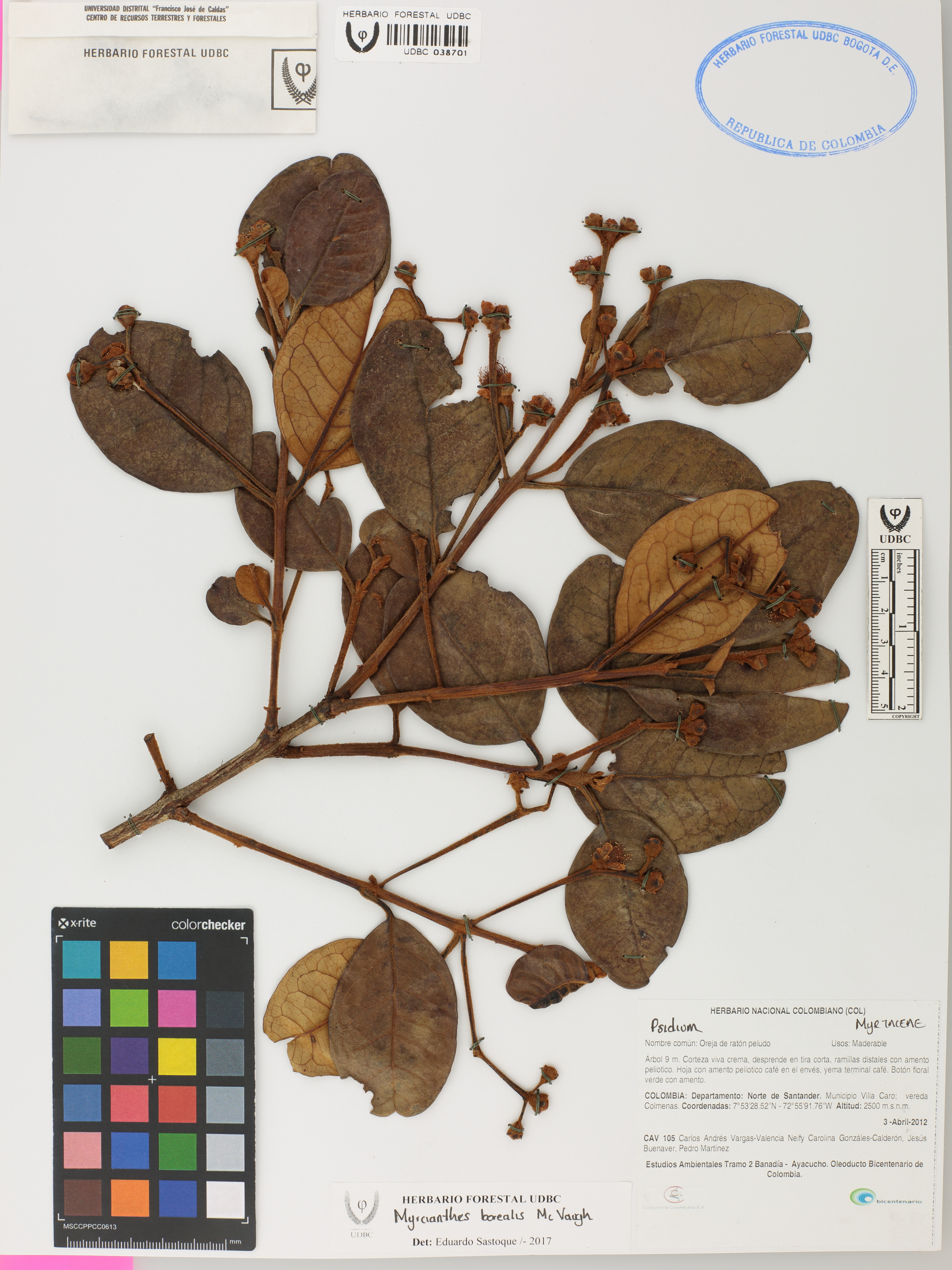 | dc.description | Fotografía del ejemplar Vargas-Valencia, C. 105, determinado como Myrcianthes borealis en el año 2017 | |
