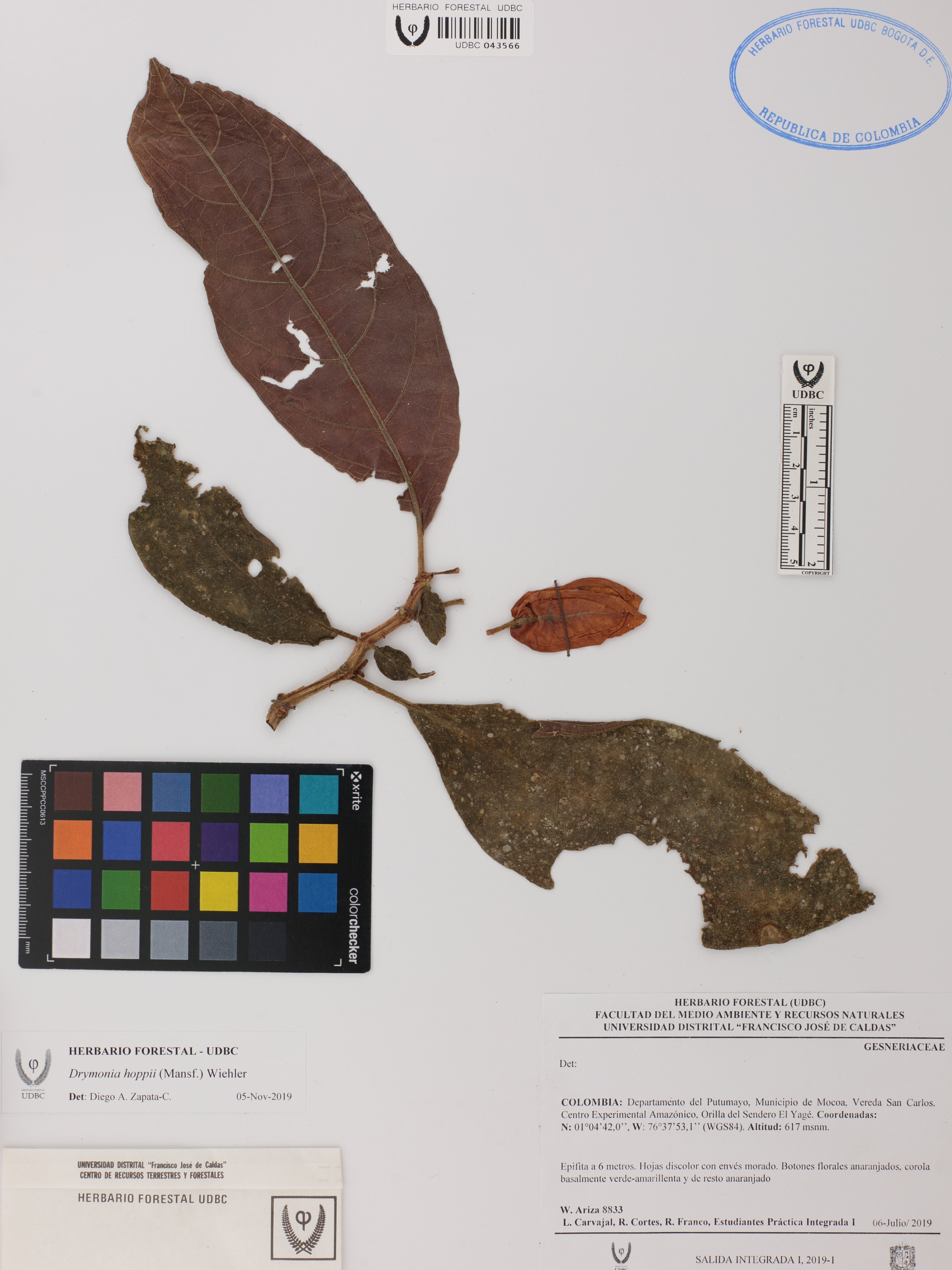 Fotografía del ejemplar Ariza, W. 8833, determinado como Drymonia hoppii en el año 2019