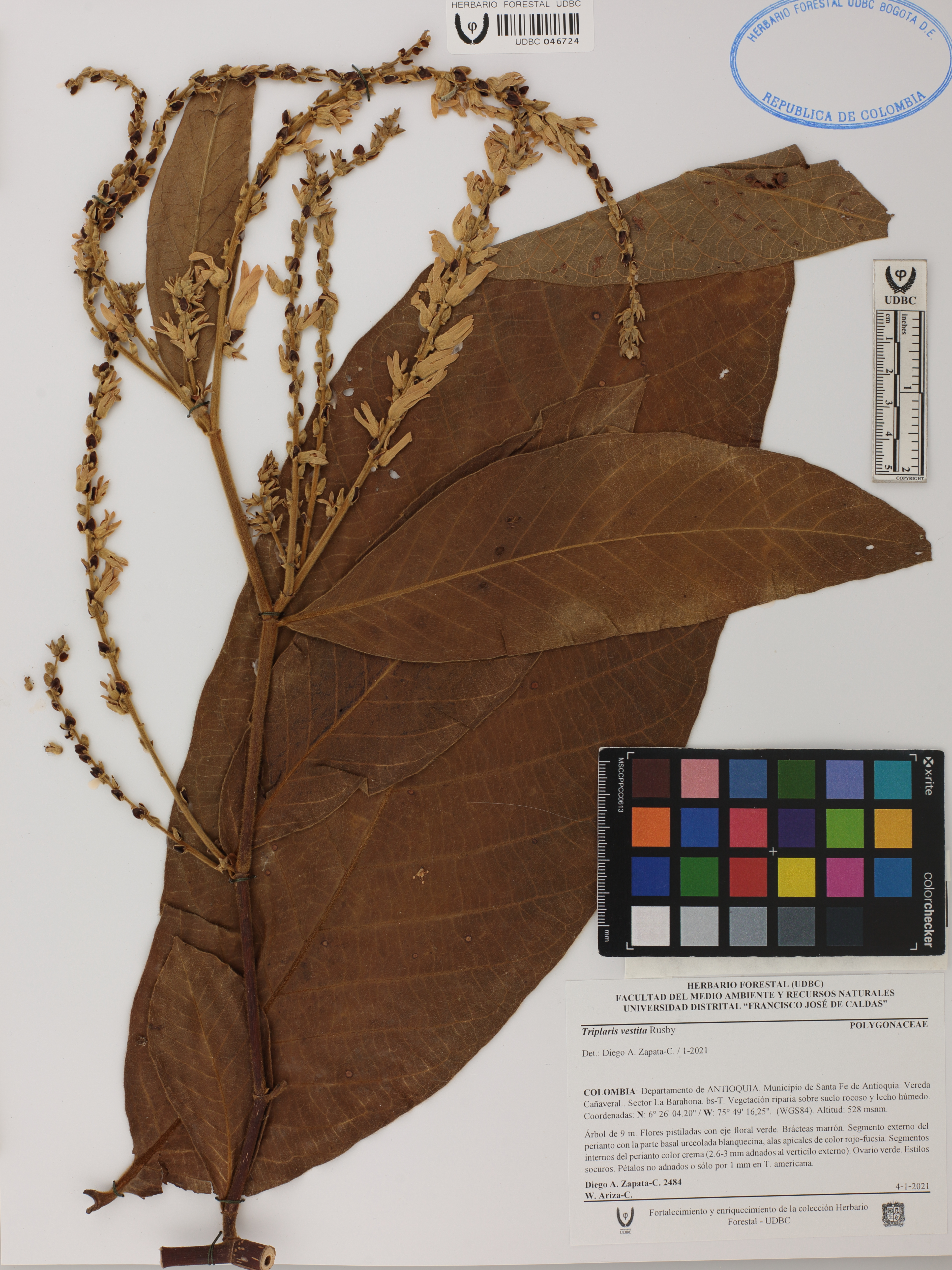 Fotografía del ejemplar Zapata-C., D. 2484, determinado como Triplaris vestita en el año 2021