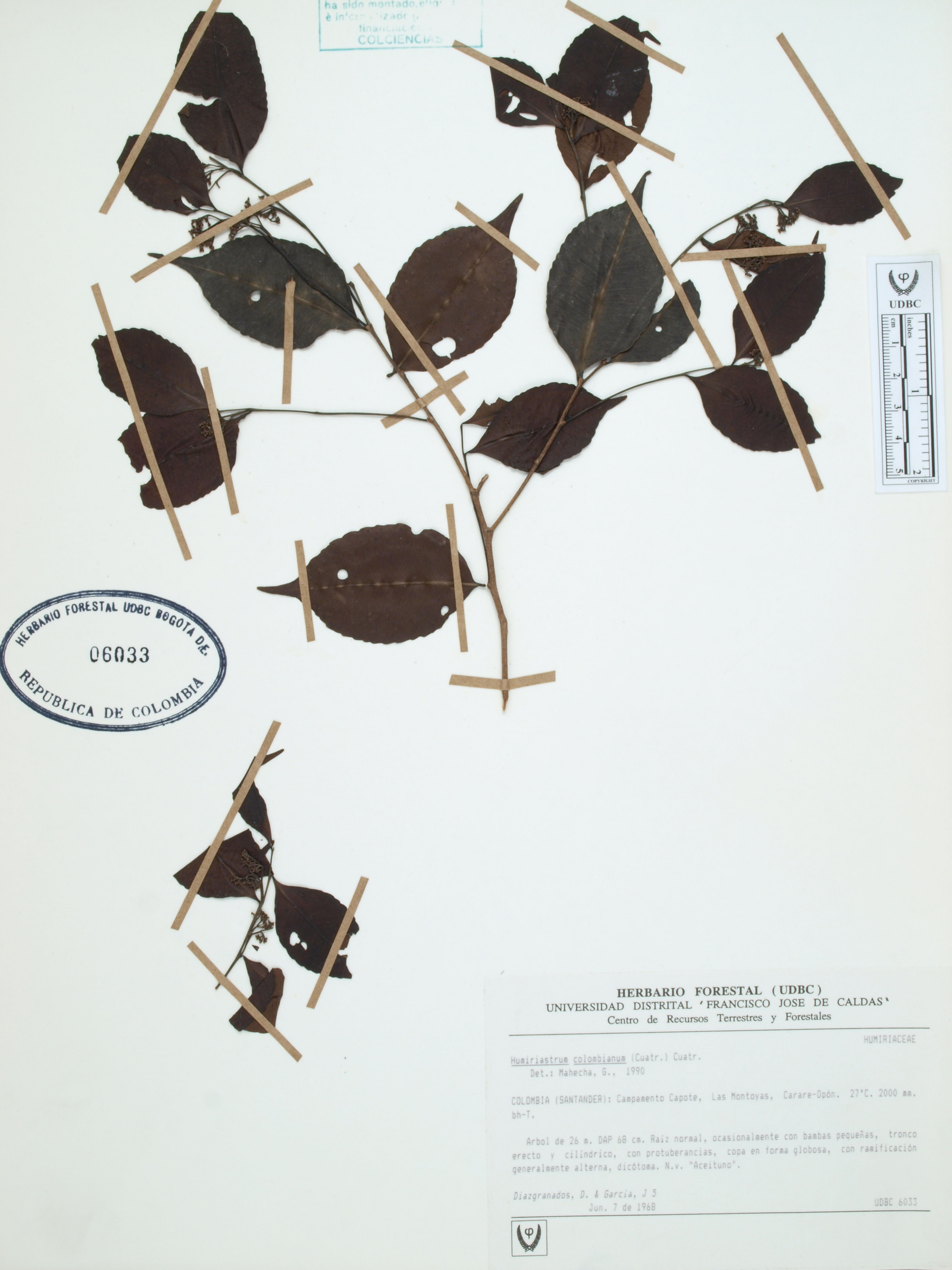 Fotografía del ejemplar Díazgranados, D. 5, determinado como Humiriastrum colombianum