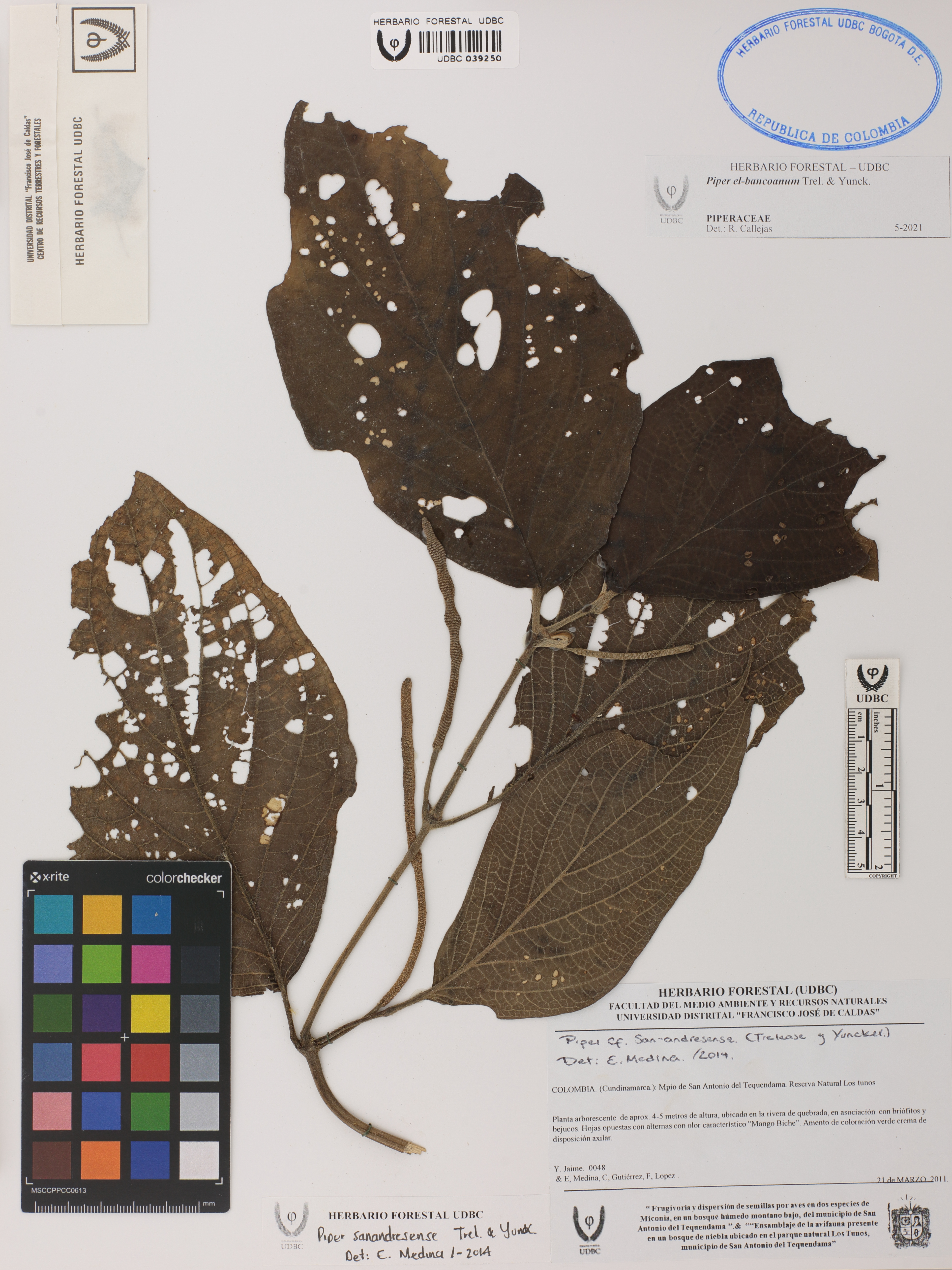 Fotografía del ejemplar Jaime, Y. 48, determinado como Piper el-bancoanum en el año 2021