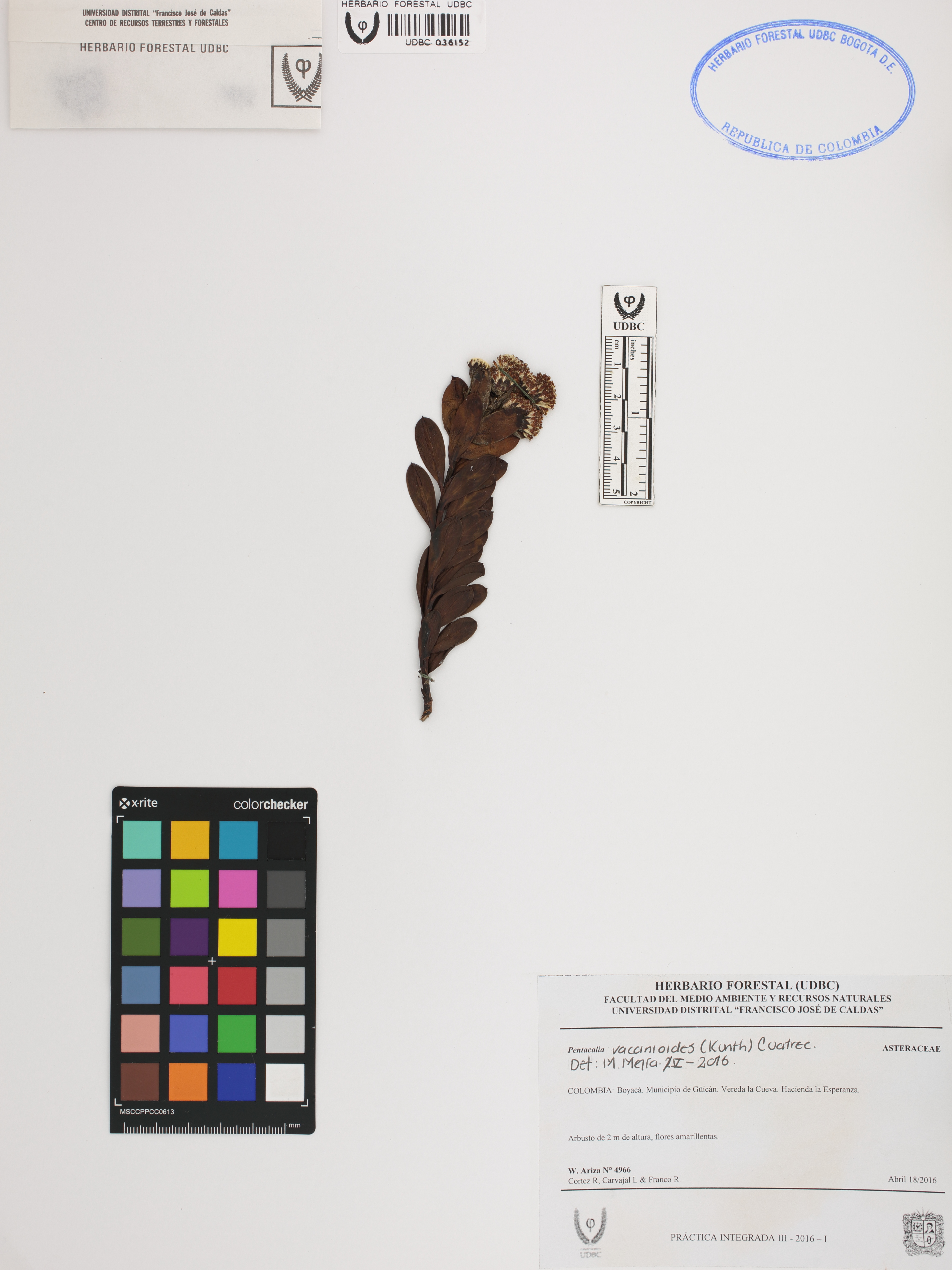 Fotografía del ejemplar Ariza, W. 4966, determinado como Pentacalia vaccinioides en el año 2016