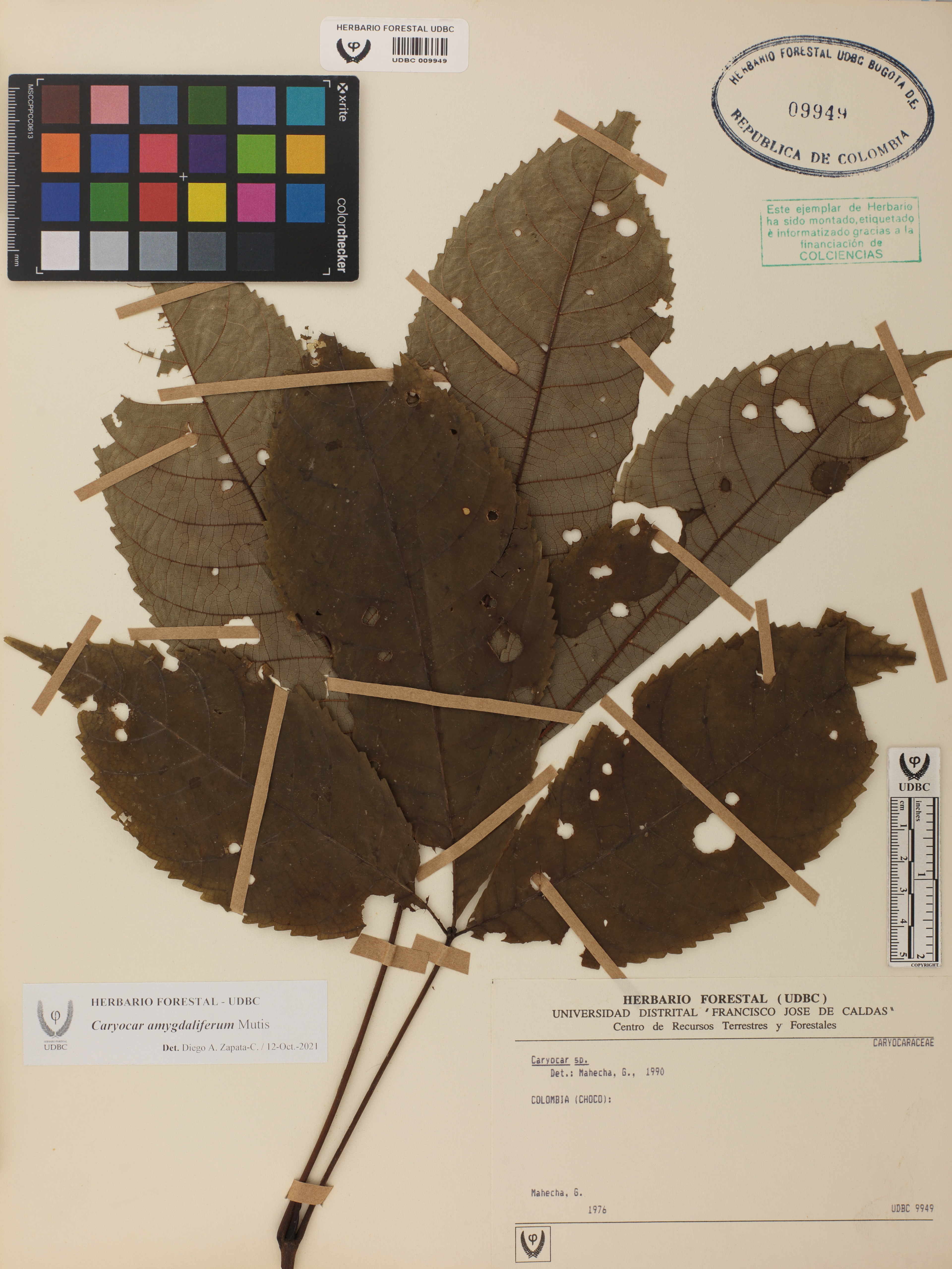 Fotografía del ejemplar Mahecha, G., determinado como Caryocar amygdaliferum en el año 2021