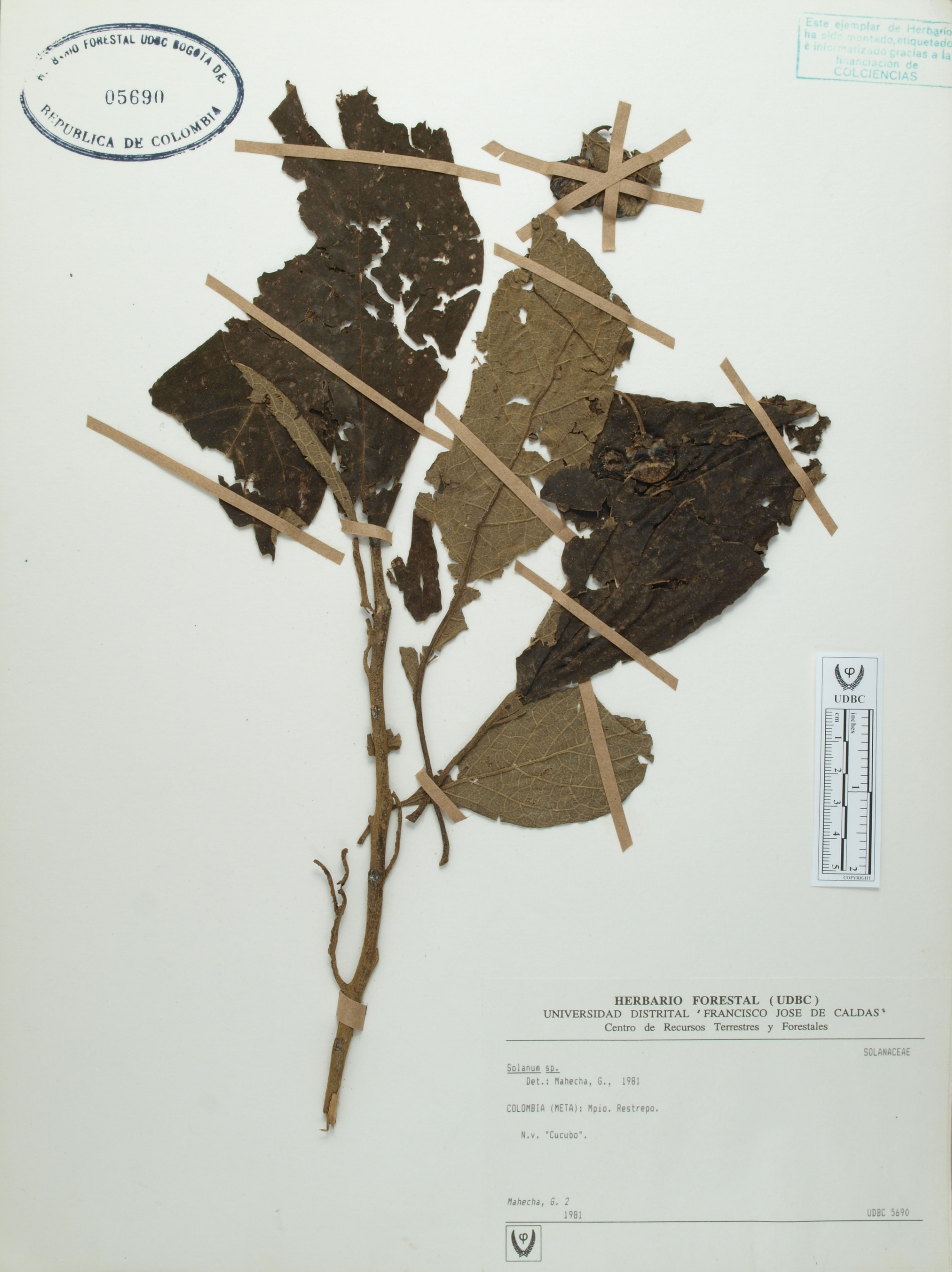 Fotografía del ejemplar Mahecha, G., determinado como Solanum sp.