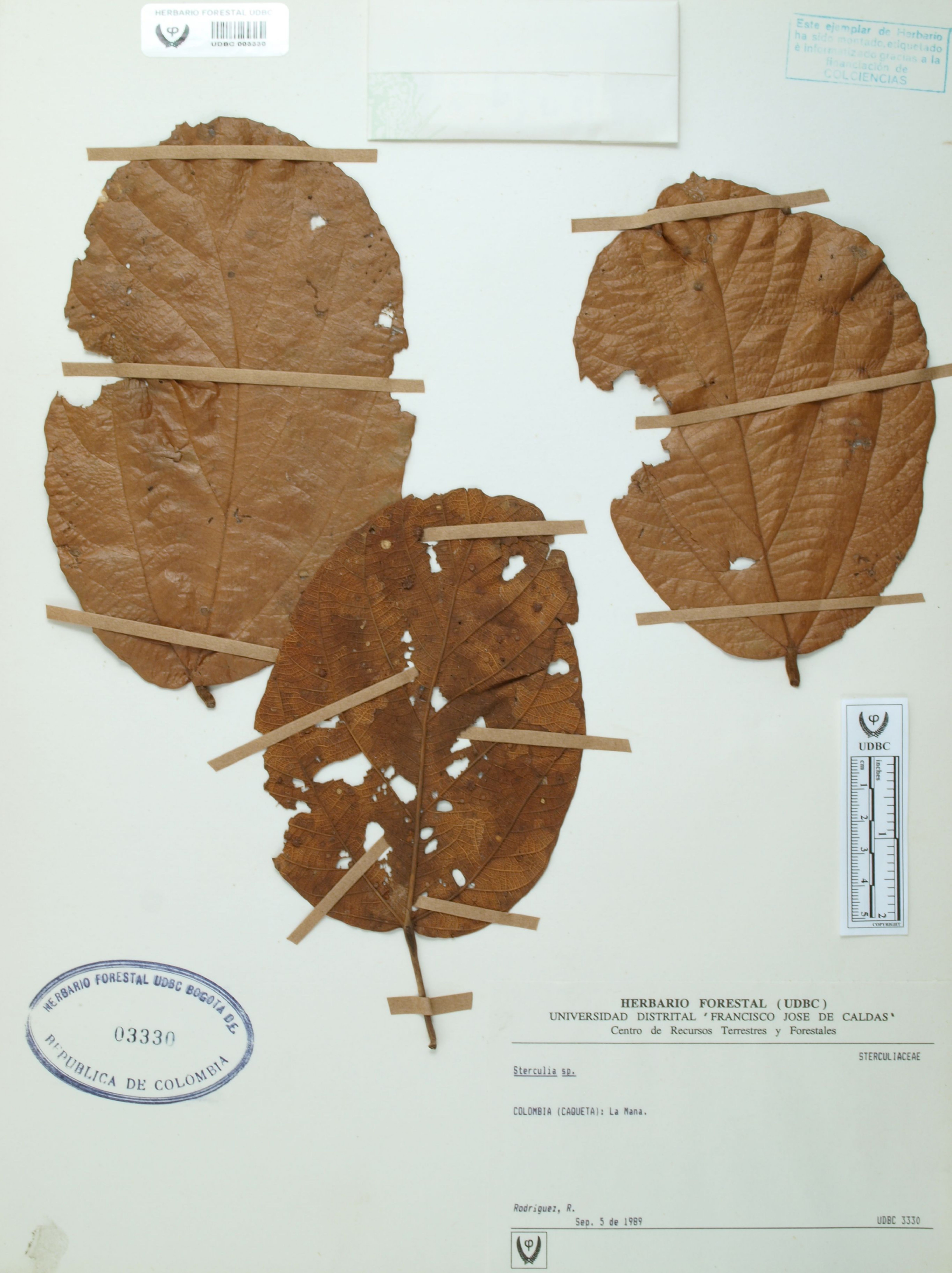 Fotografía del ejemplar Rodríguez, R., determinado como Sterculia colombiana en el año 2022
