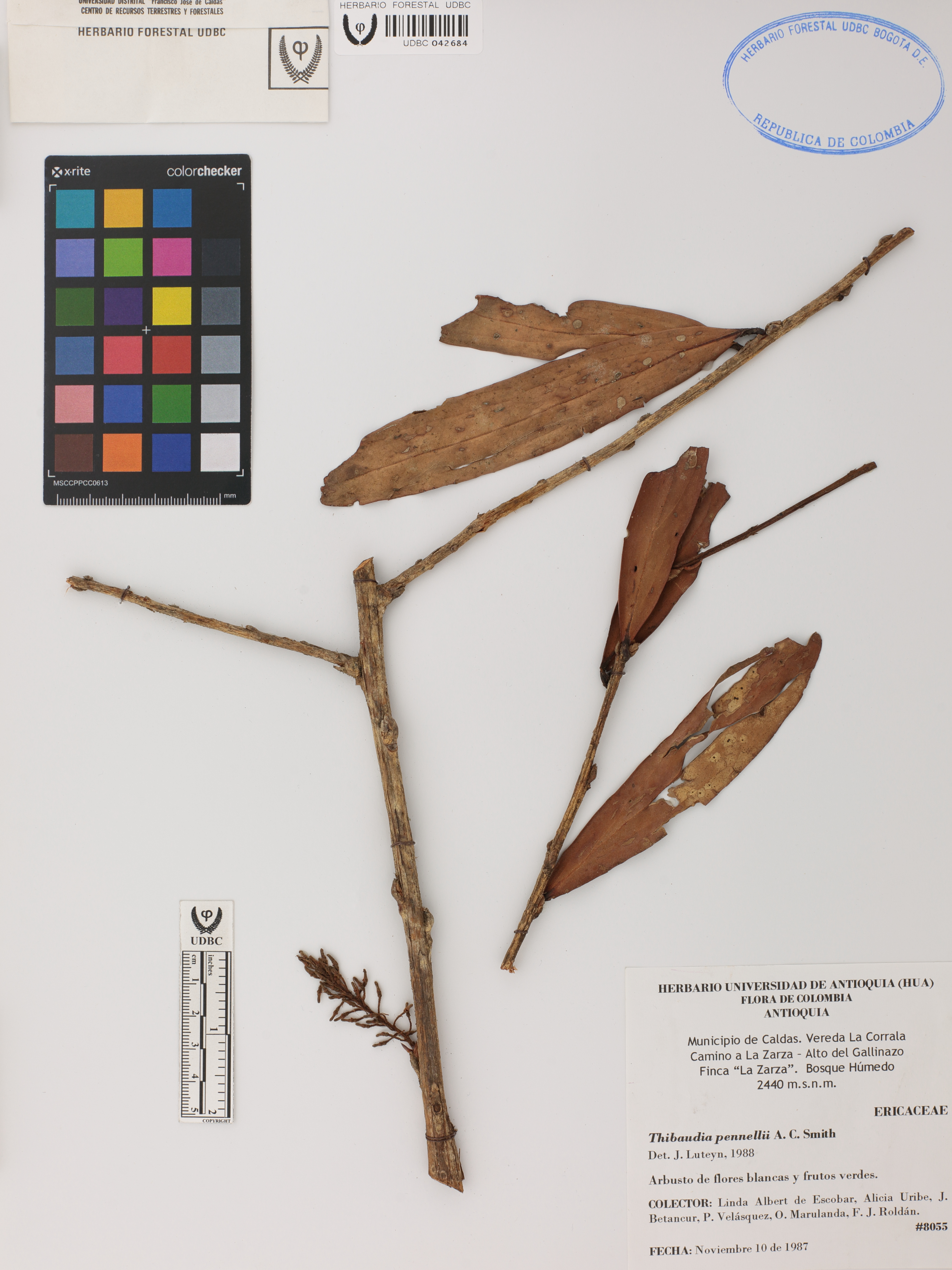 Fotografía del ejemplar Albert de Escobar, L. 8055, determinado como Thibaudia pennellii en el año 1988