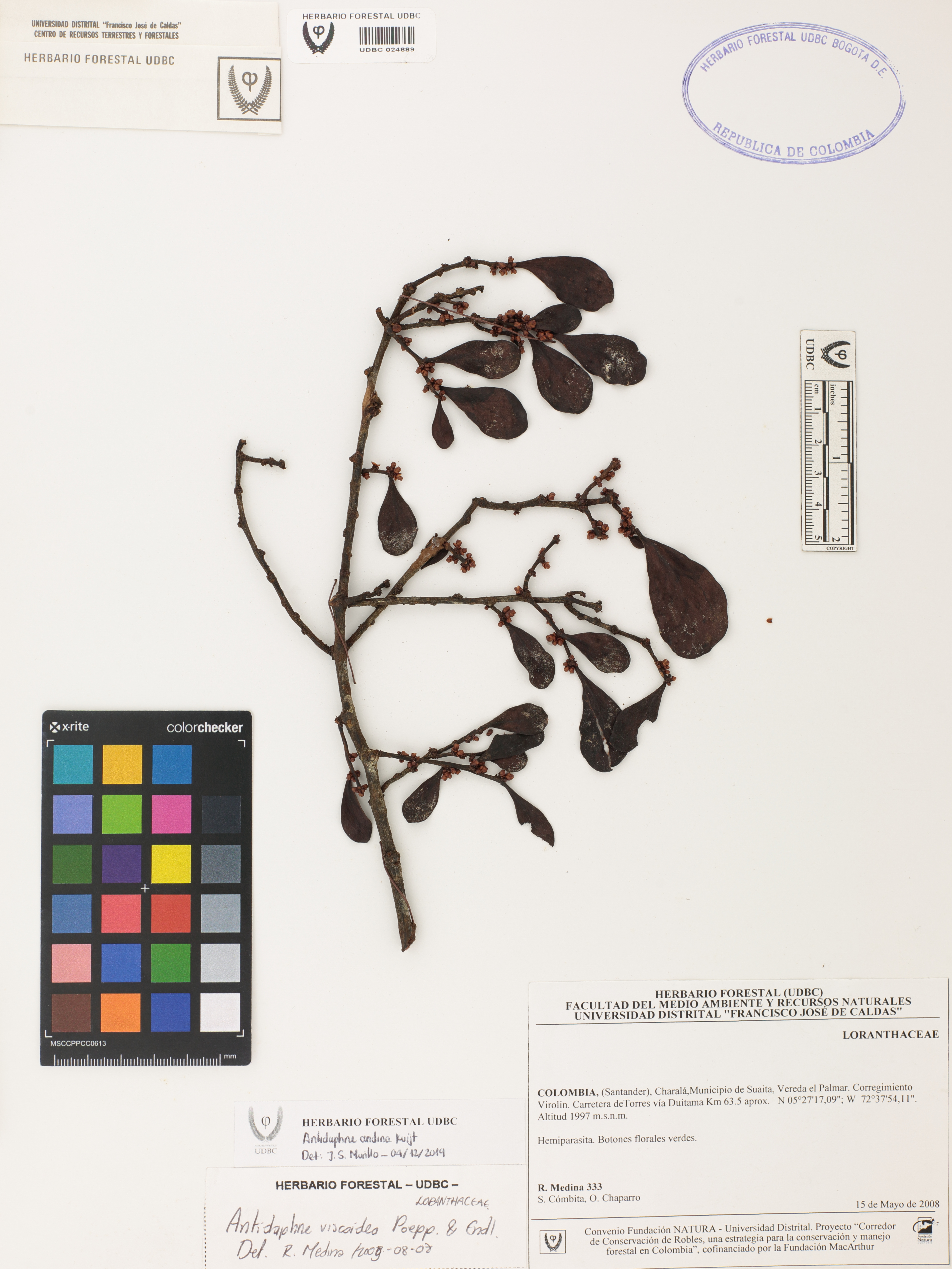 Fotografía del ejemplar Medina, R. 333, determinado como Antidaphne andina en el año 2019