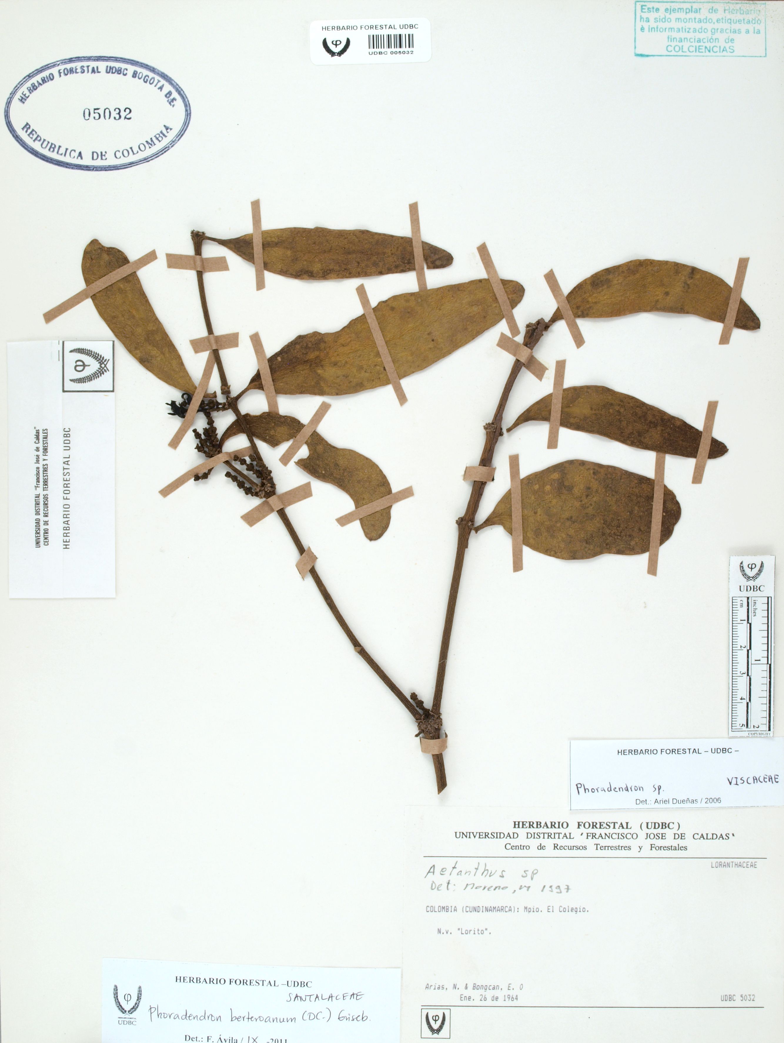 Fotografía del ejemplar Arias, N., determinado como Phoradendron berteroanum en el año 2011