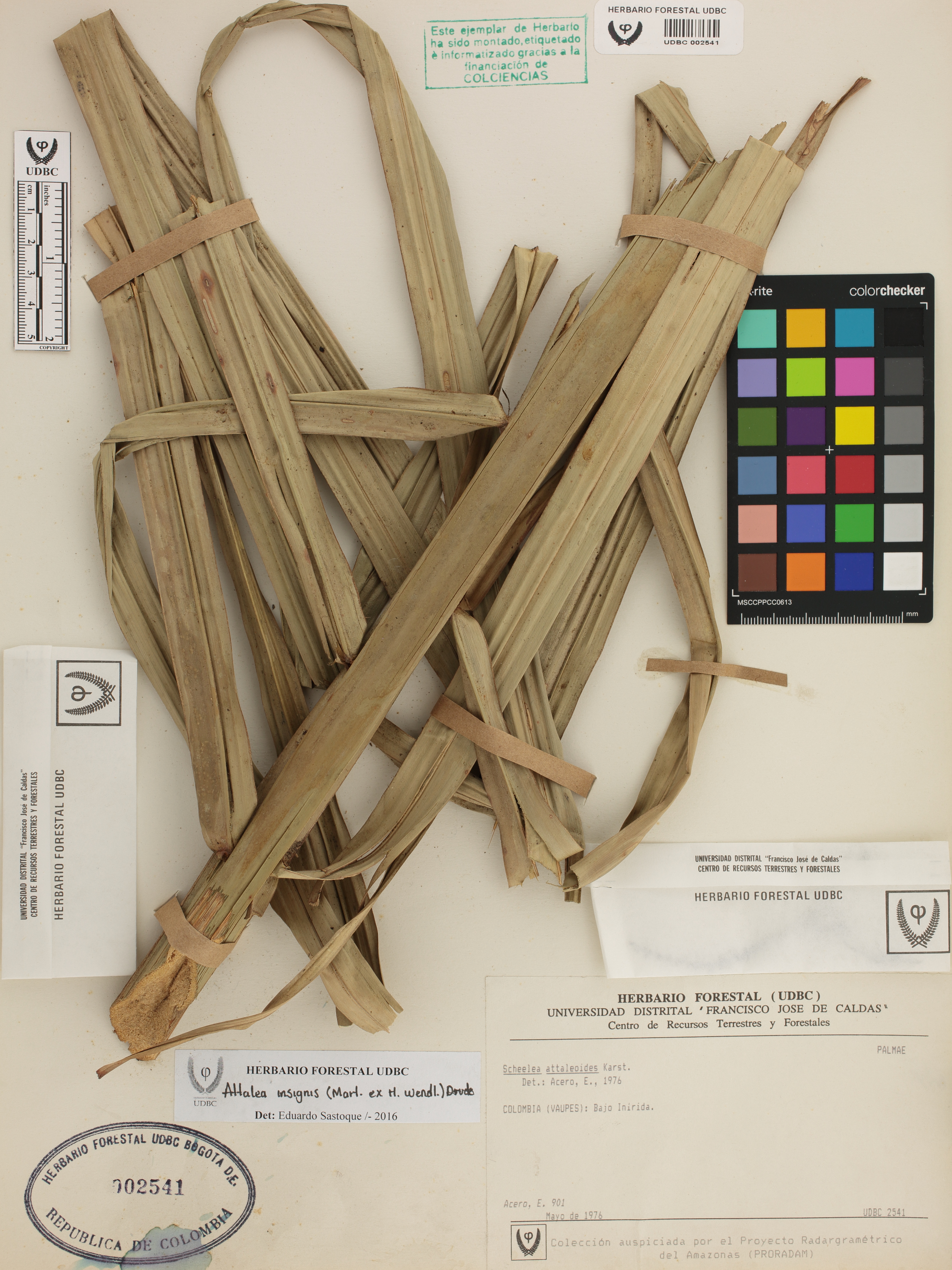 Fotografía del ejemplar Acero, E. 901, determinado como Attalea insignis en el año 2016