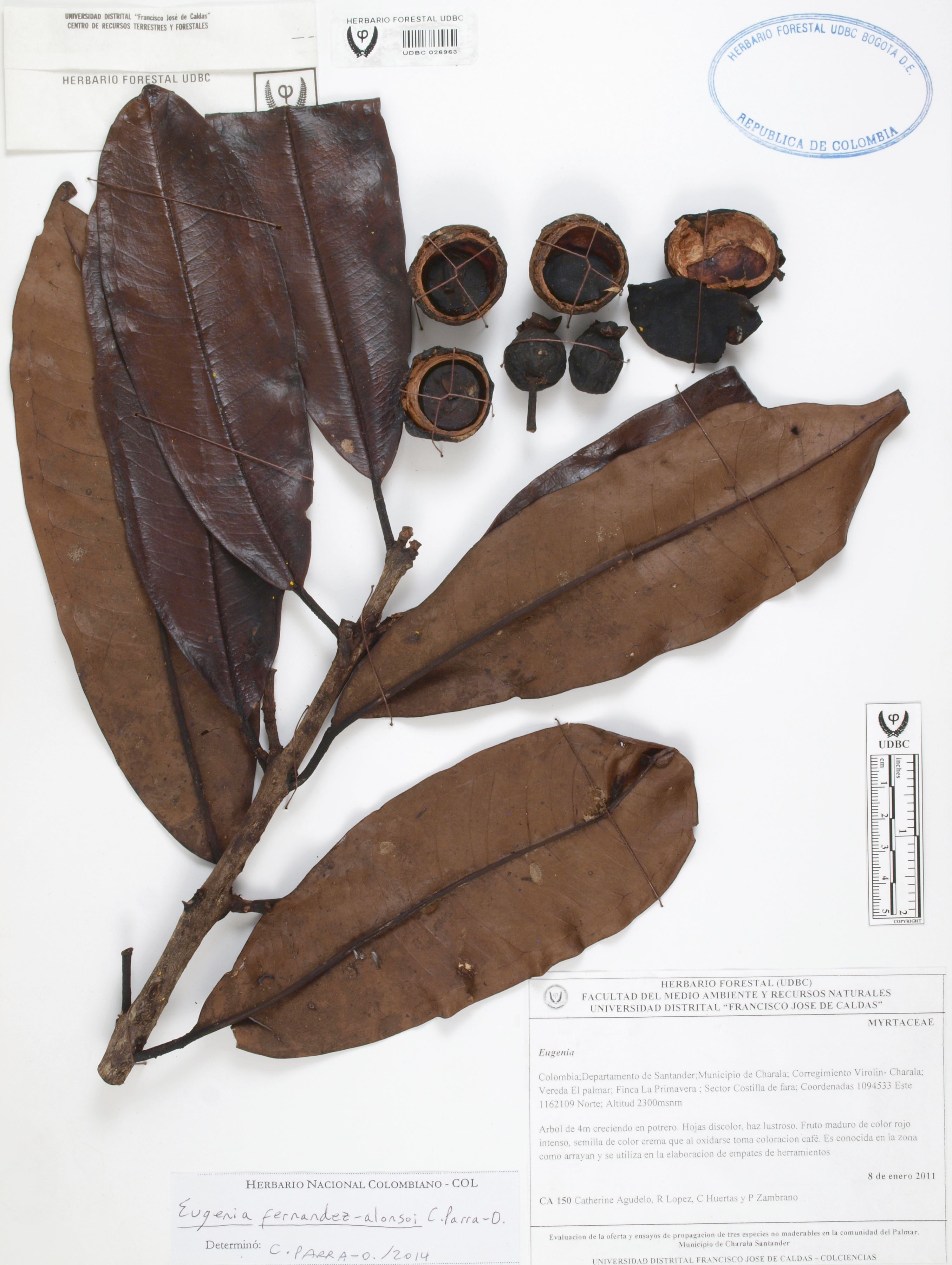 Fotografía del ejemplar Agudelo, C. 150, determinado como Eugenia fernandez-alonsoi en el año 2014