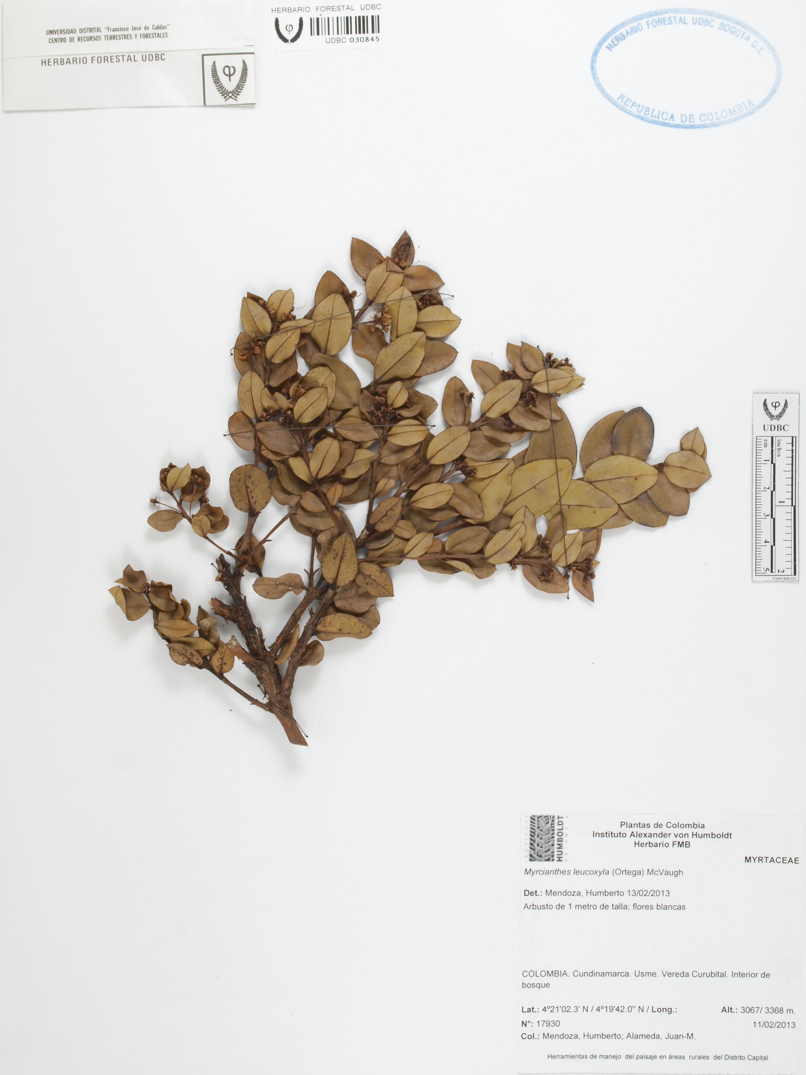 Fotografía del ejemplar Mendoza, H. 17930, determinado como Myrcianthes leucoxyla en el año 2013