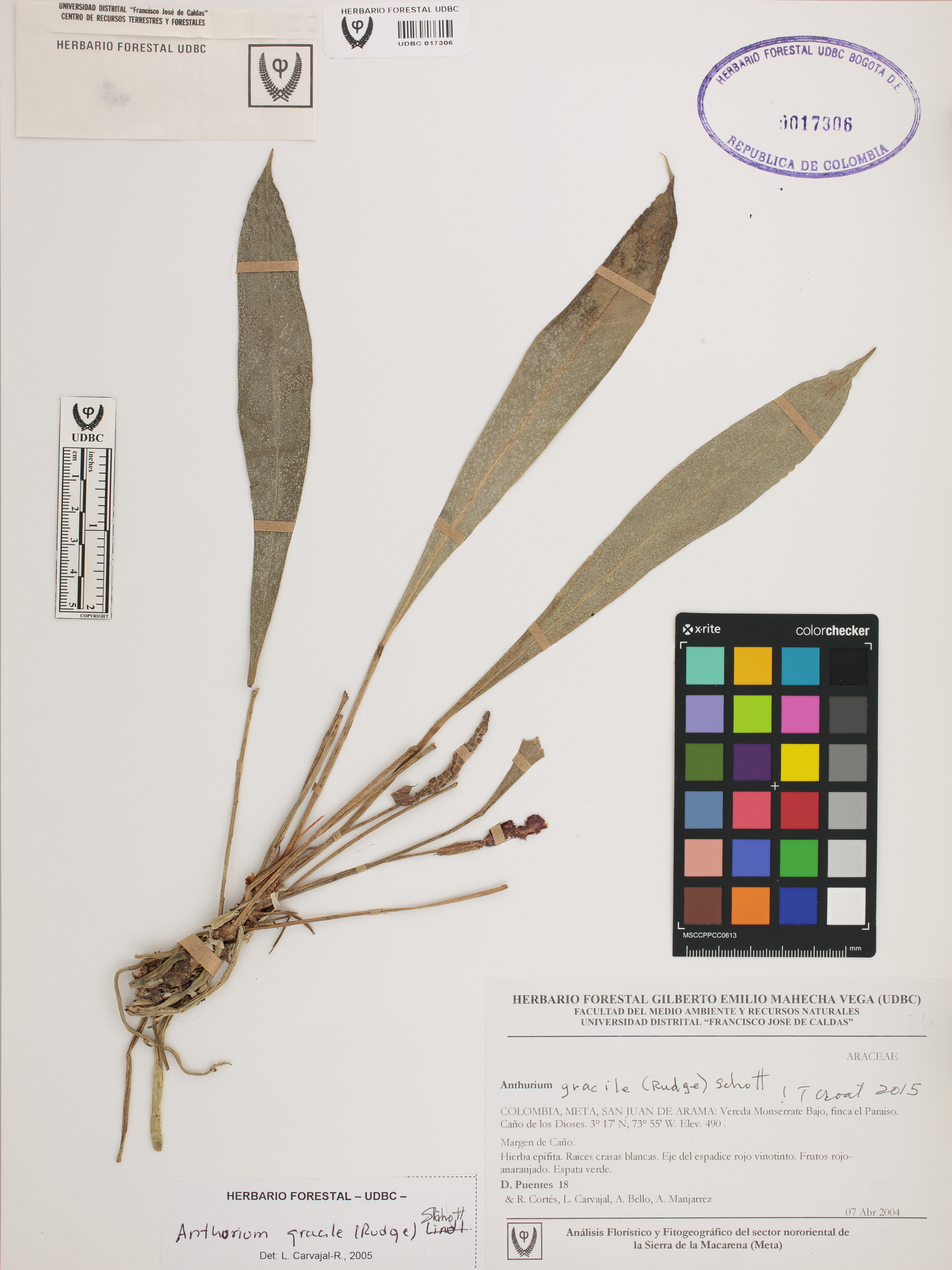 Fotografía del ejemplar Puentes, D. 18, determinado como Anthurium gracile en el año 2005