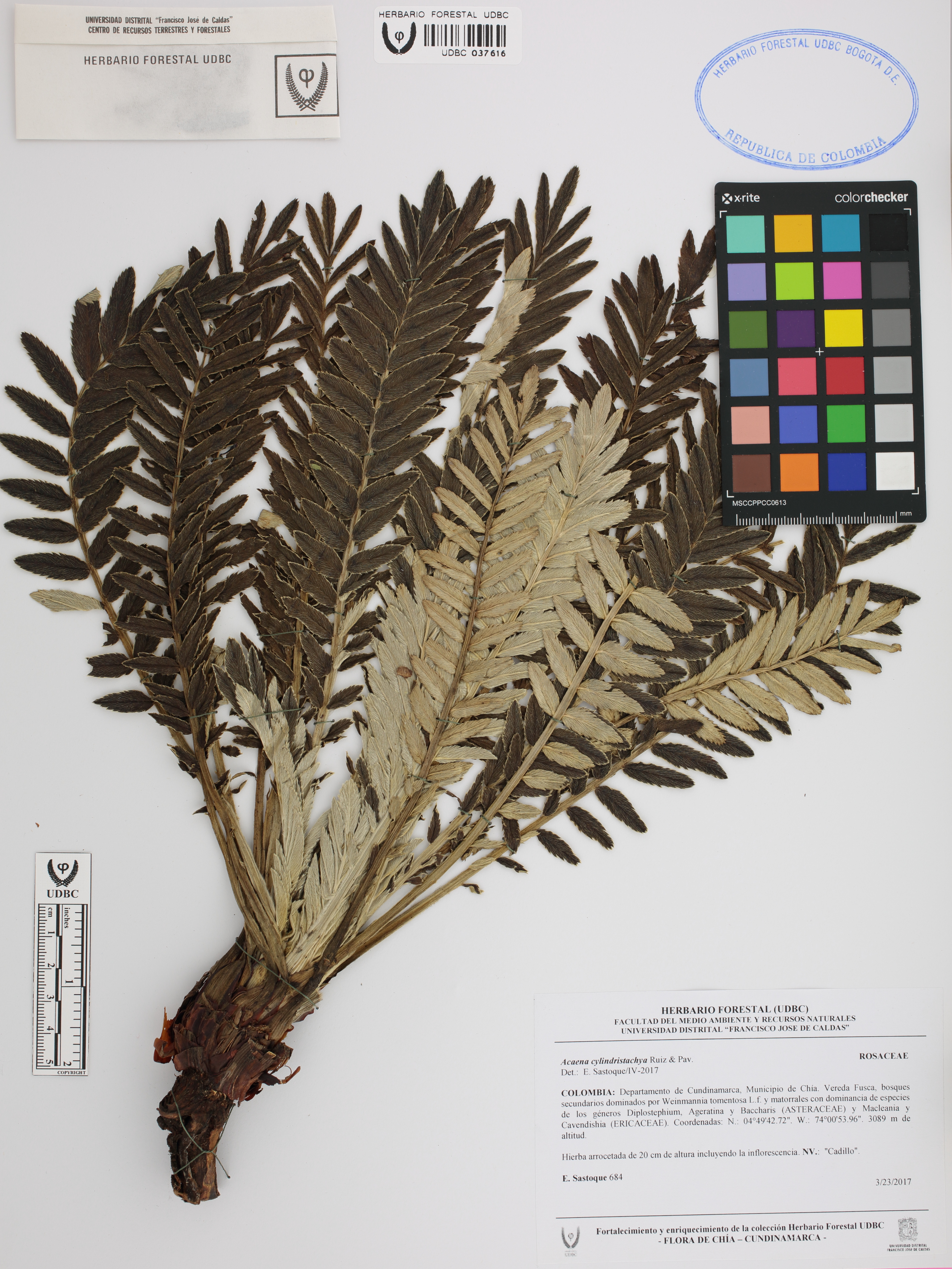 Fotografía del ejemplar Sastoque, E. 684, determinado como Acaena cylindristachya en el año 2017
