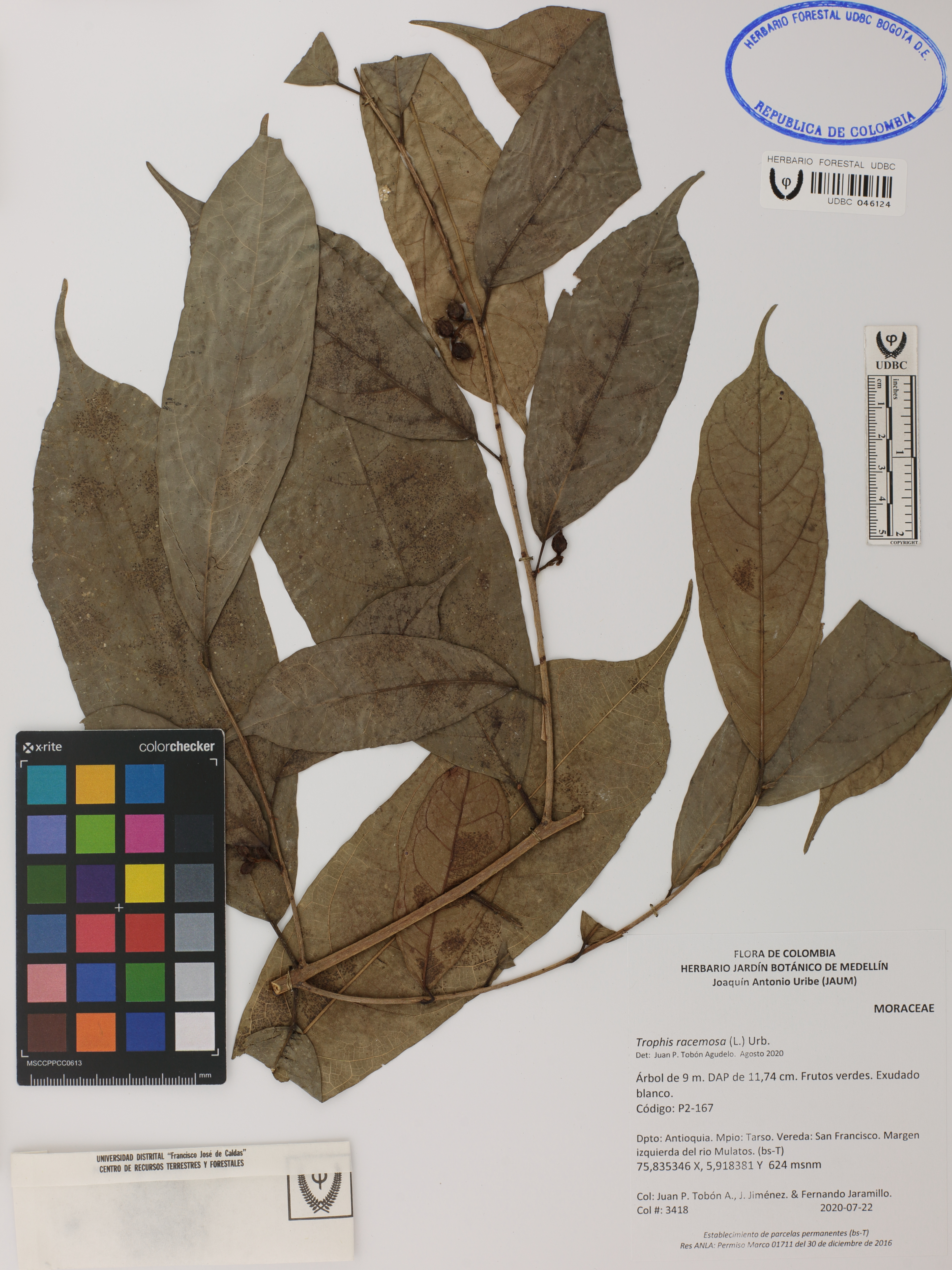 | dc.description | Fotografía del ejemplar Tobón-Agudelo, J. 3418, determinado como Trophis racemosa en el año 2020 | |