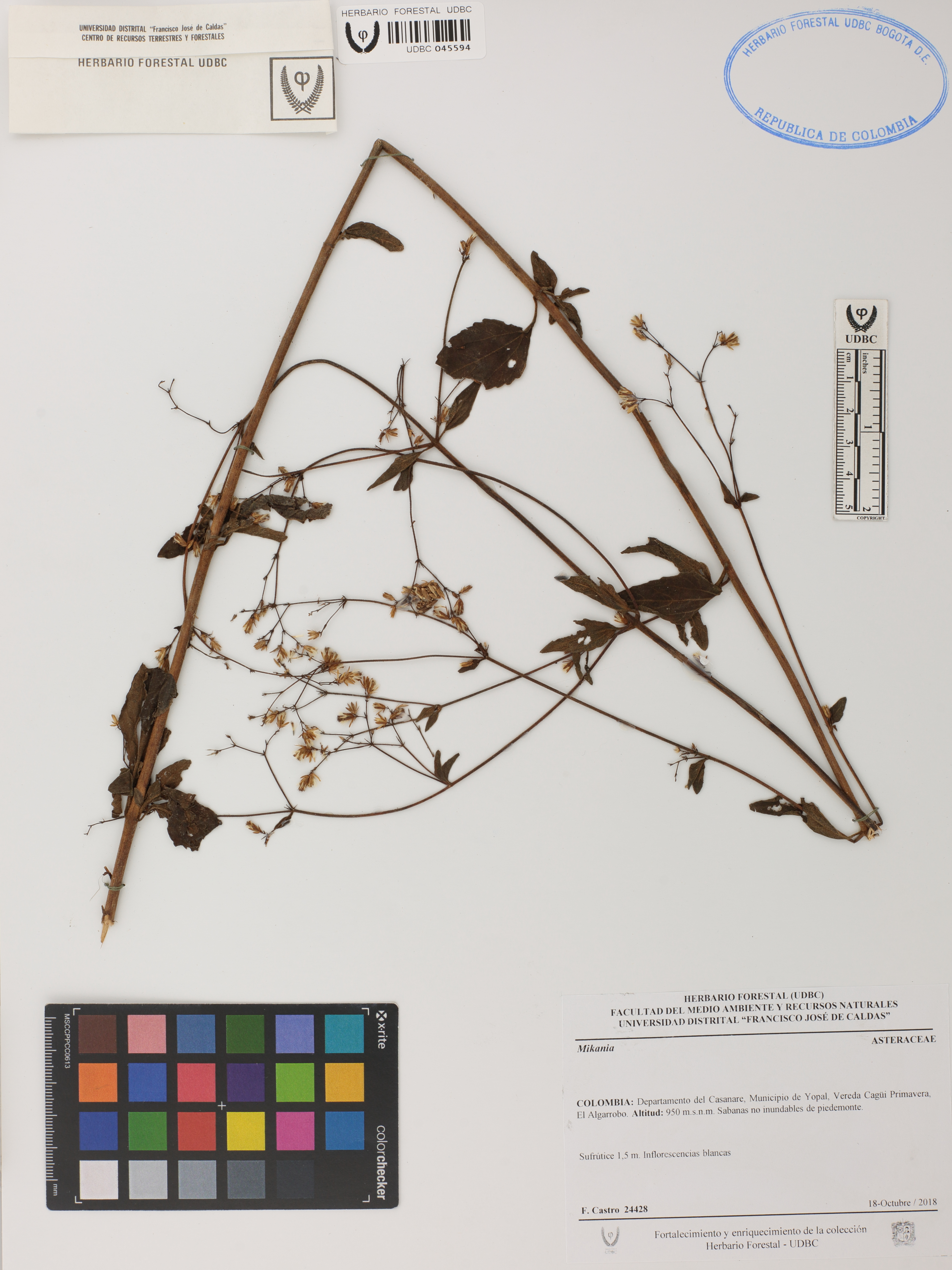| dc.description | Fotografía del ejemplar Castro, F. 24428, determinado como Mikania sp. | |