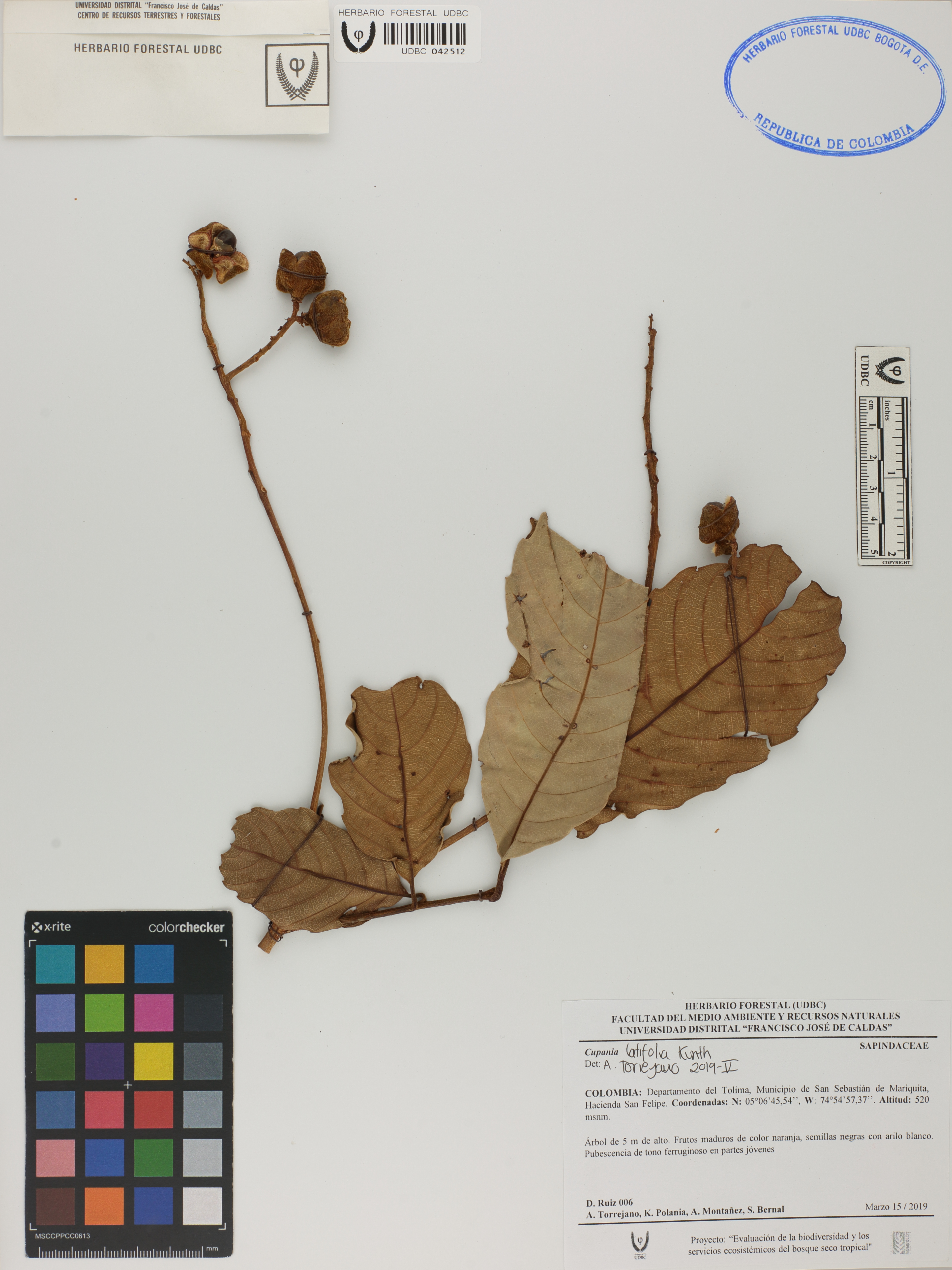 Fotografía del ejemplar Ruiz, D. 6, determinado como Cupania latifolia en el año 2019