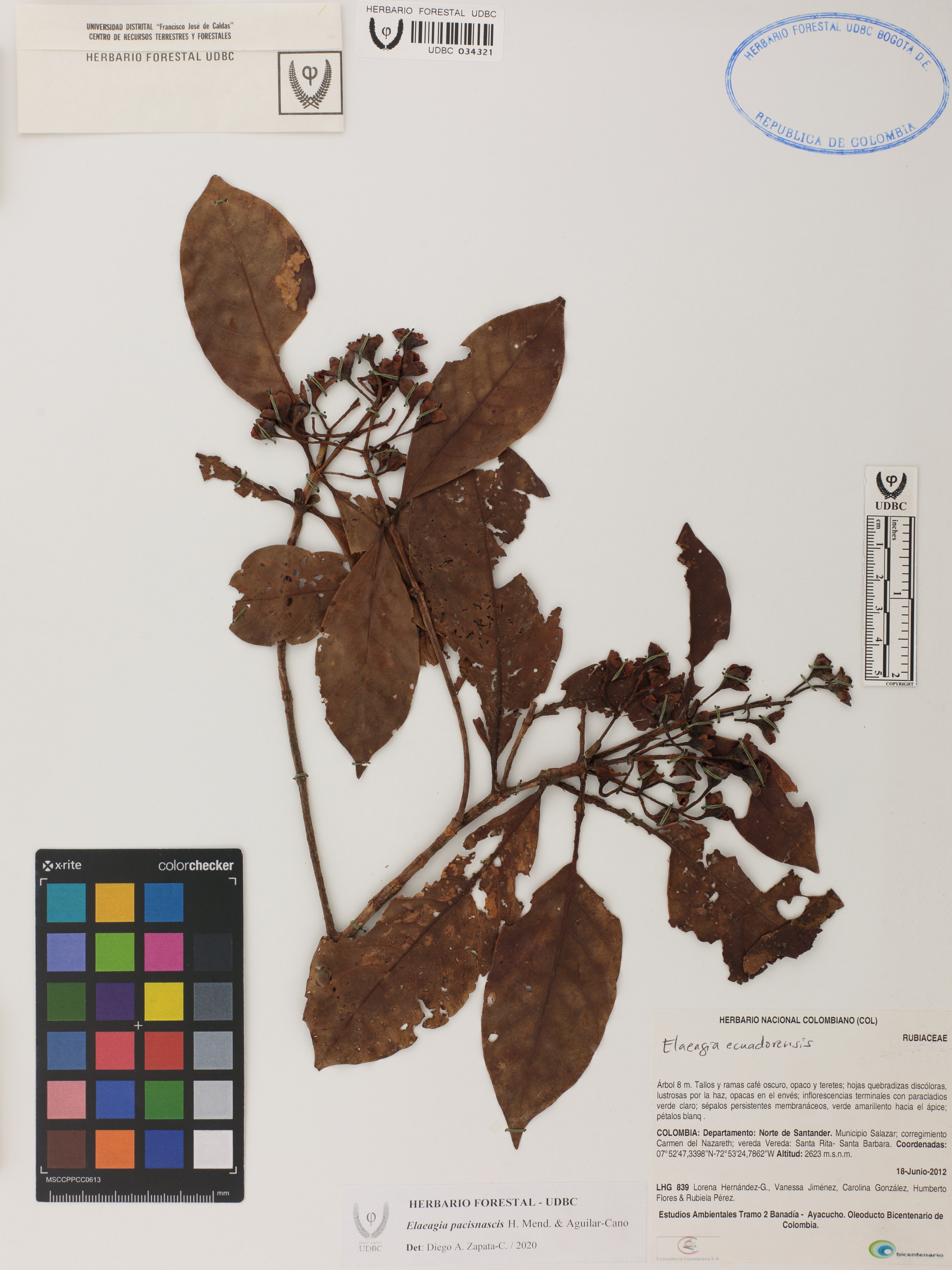 Fotografía del ejemplar Hernández-G., L. 839, determinado como Elaeagia pacisnascis en el año 2020
