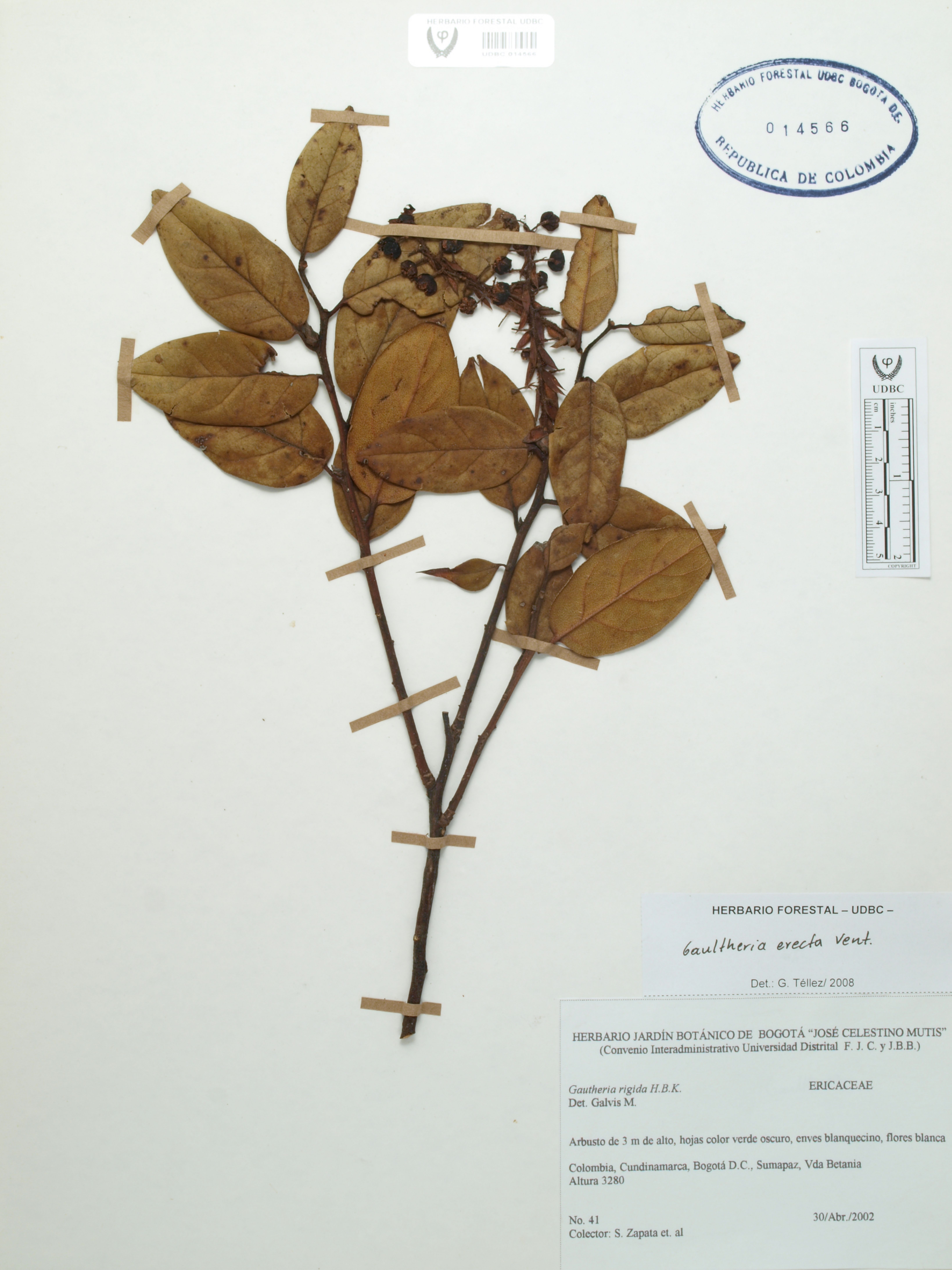 Fotografía del ejemplar Zapata, S. 41, determinado como Gaultheria erecta en el año 2008